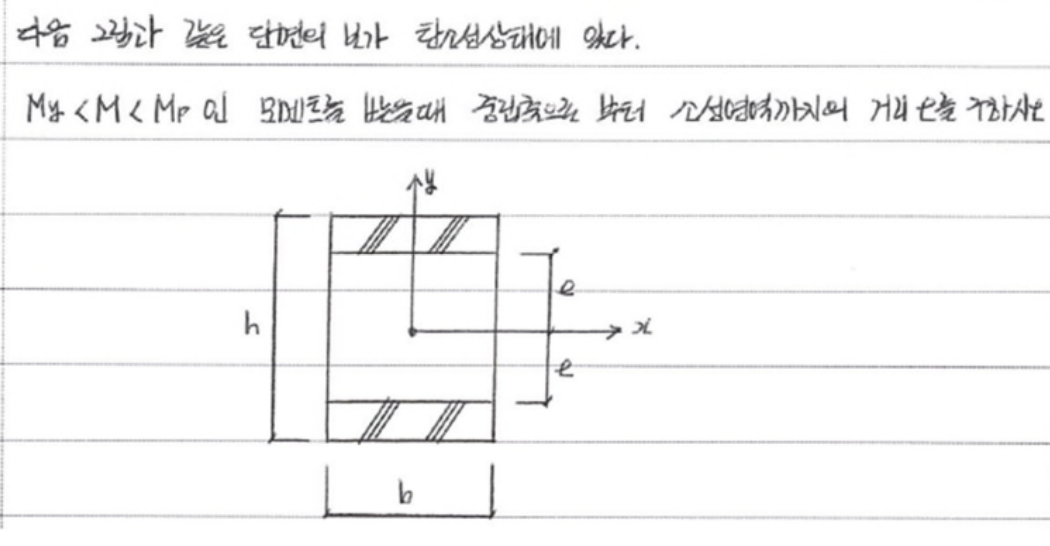중요::2 풀이::O 반복도::3 설명::중립축으로부터 소성역역까지의 거리 e2