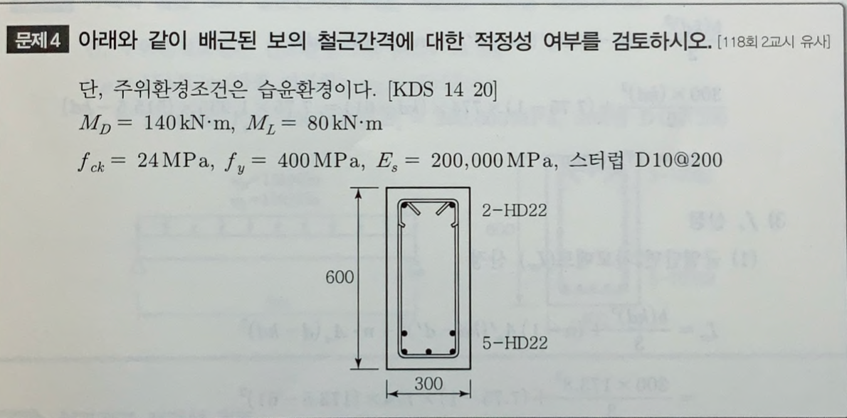 중요::1 풀이:: 반복도::1 설명::철근간격의 적성성 검토
