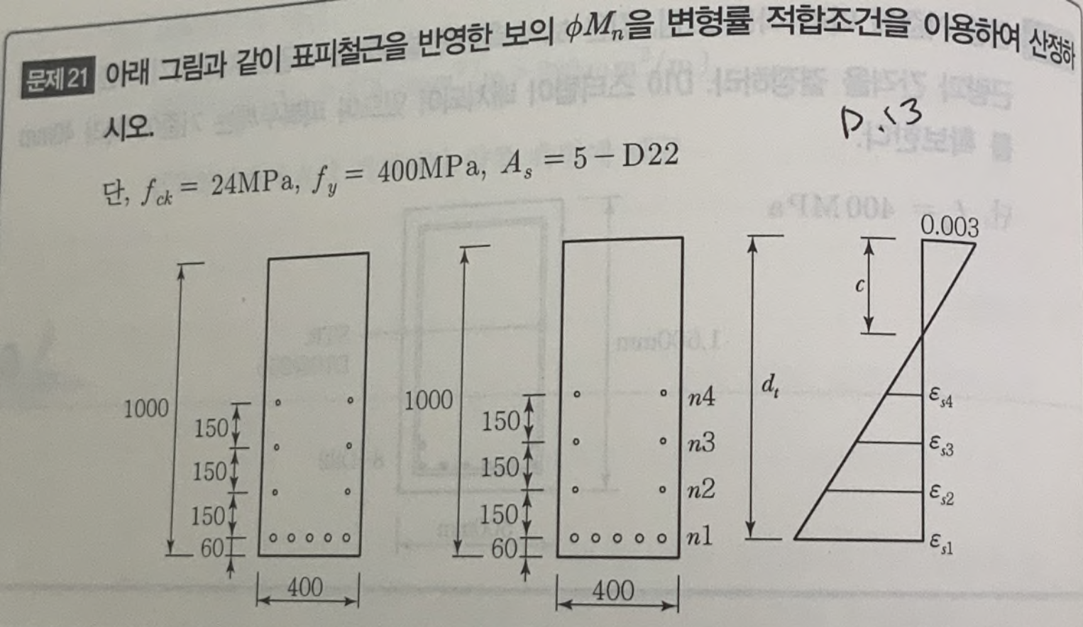중요:: 풀이:: 반복도:: 설명::표피철근을 반영한 휨강도 산정