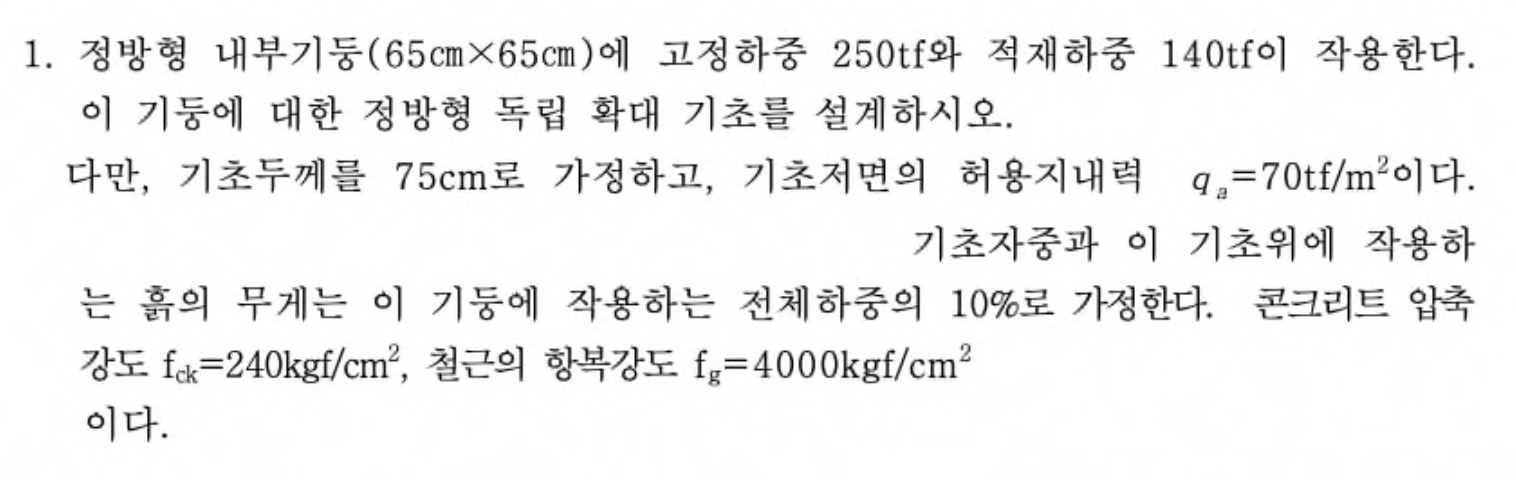 중요:: 풀이:: 반복도::0 설명::축력을 받는 독립기초 설계
