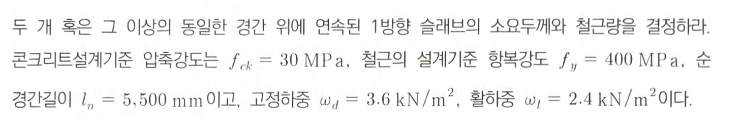 중요:: 풀이:: 반복도:: 설명::1방향 슬래브의 설계