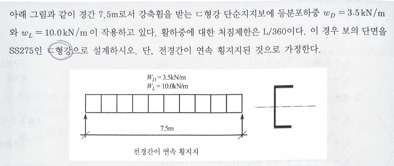 중요:: 풀이:: 반복도::0 설명::ㄷ형강의 휨과 전단 검토