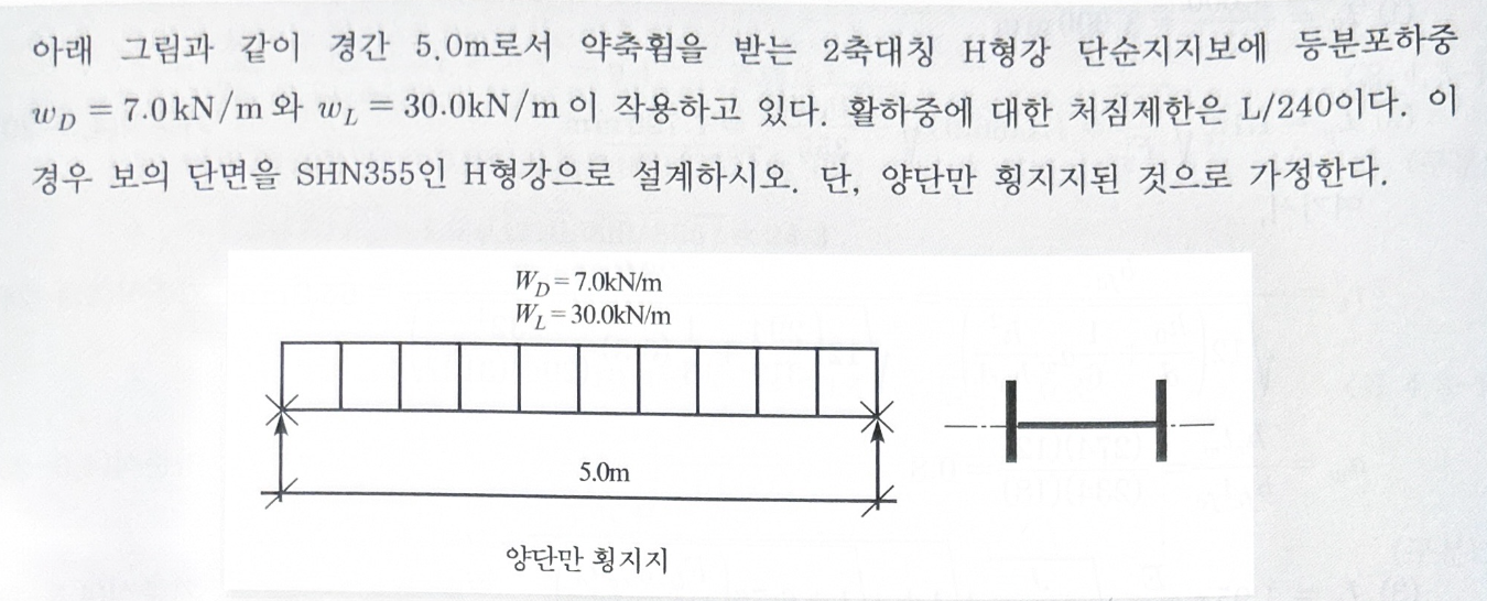 중요::4 풀이::XX 반복도::8 설명::H형강의 약축 휨 검토