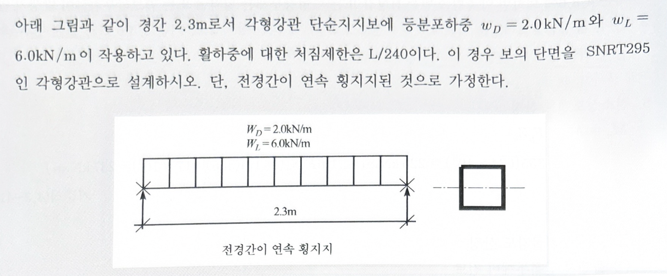 중요::3 풀이::XX 반복도::9 설명::각형강관의 휨과 전단 검토