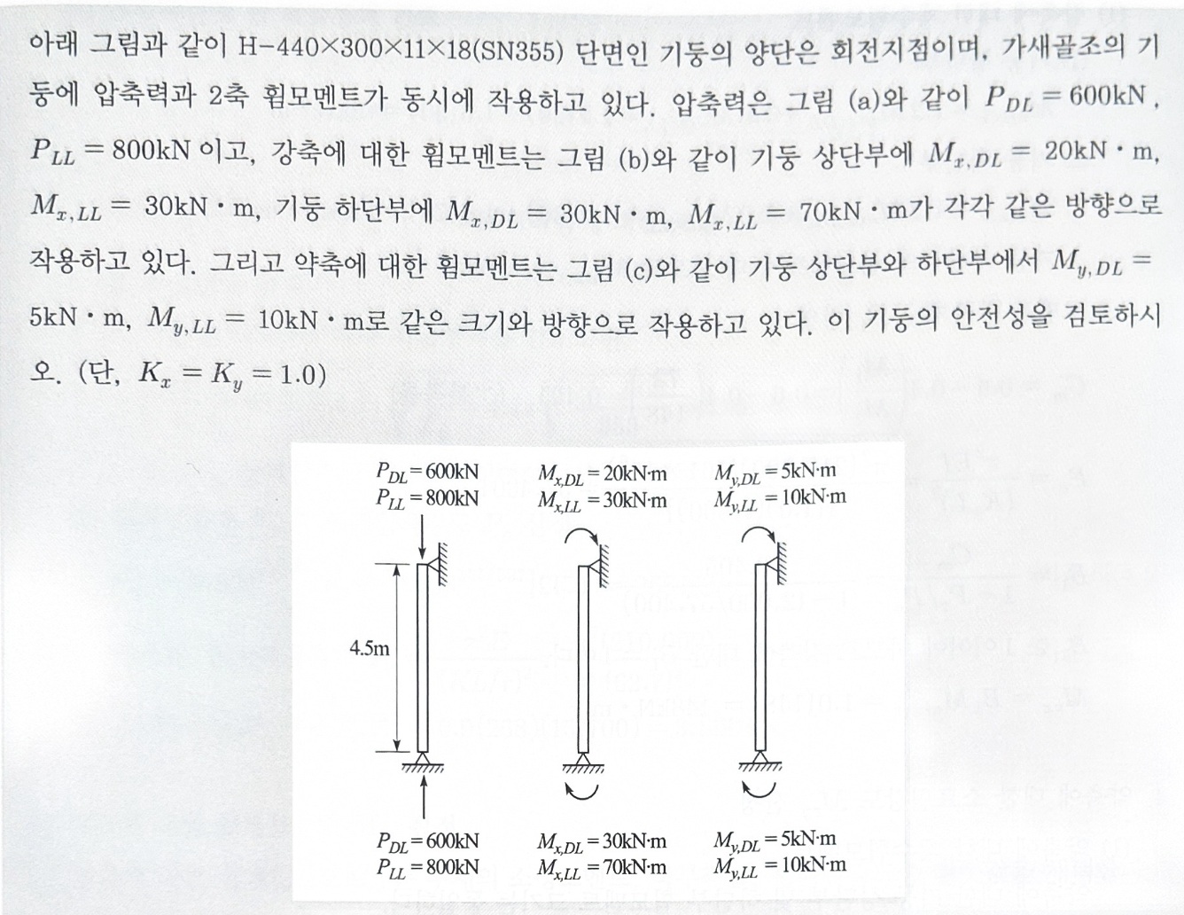 중요::5 풀이::XO 반복도::10 설명::압축력과 2축휨을 받는 H형강