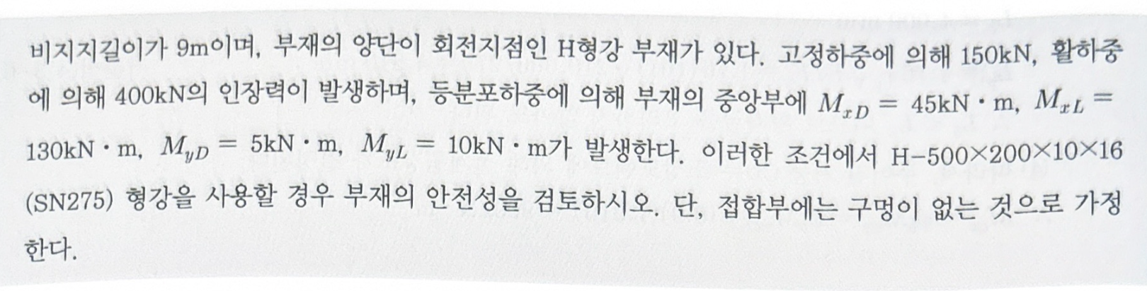 중요::5 풀이::X 반복도::10 설명::인장력과 2축휨을 받는 H형강