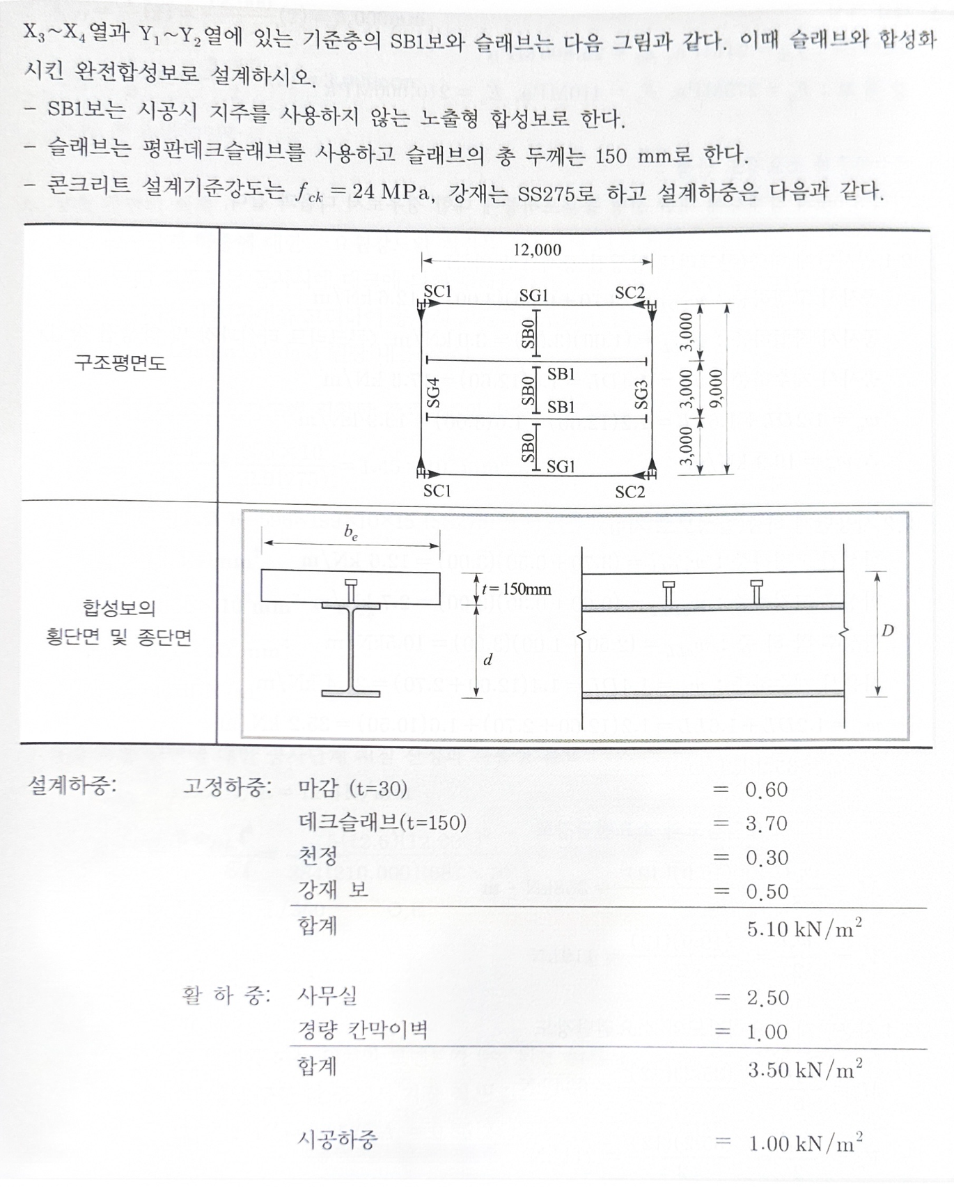 중요::5 풀이::X 반복도::10 설명::노출형합성보 설계 (완전합성보) 5035 스터드앵커 D19(Fu=400MPa) r=22, 합성보의 안전성검토 스터드앵커 설계 최종처짐 검토