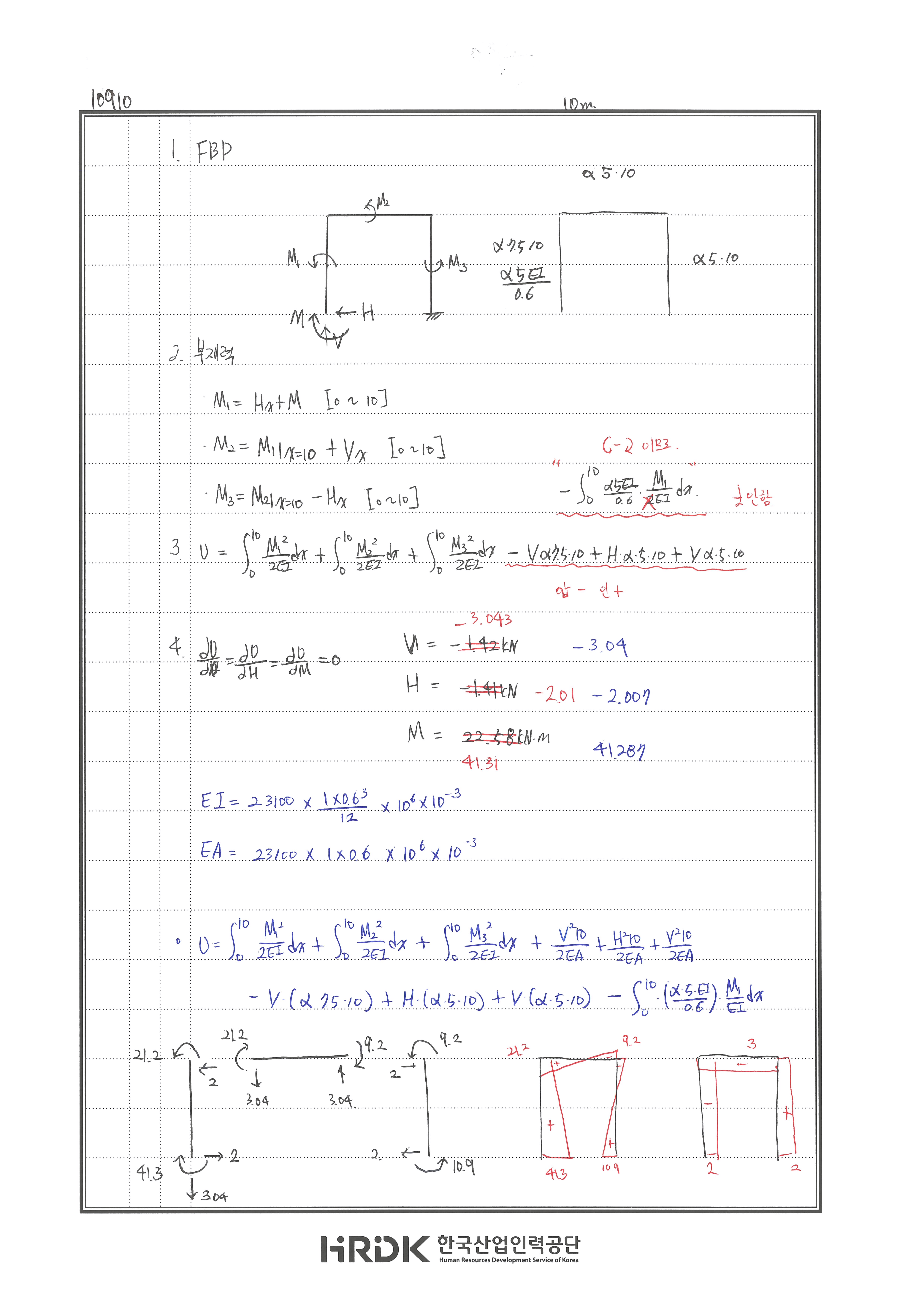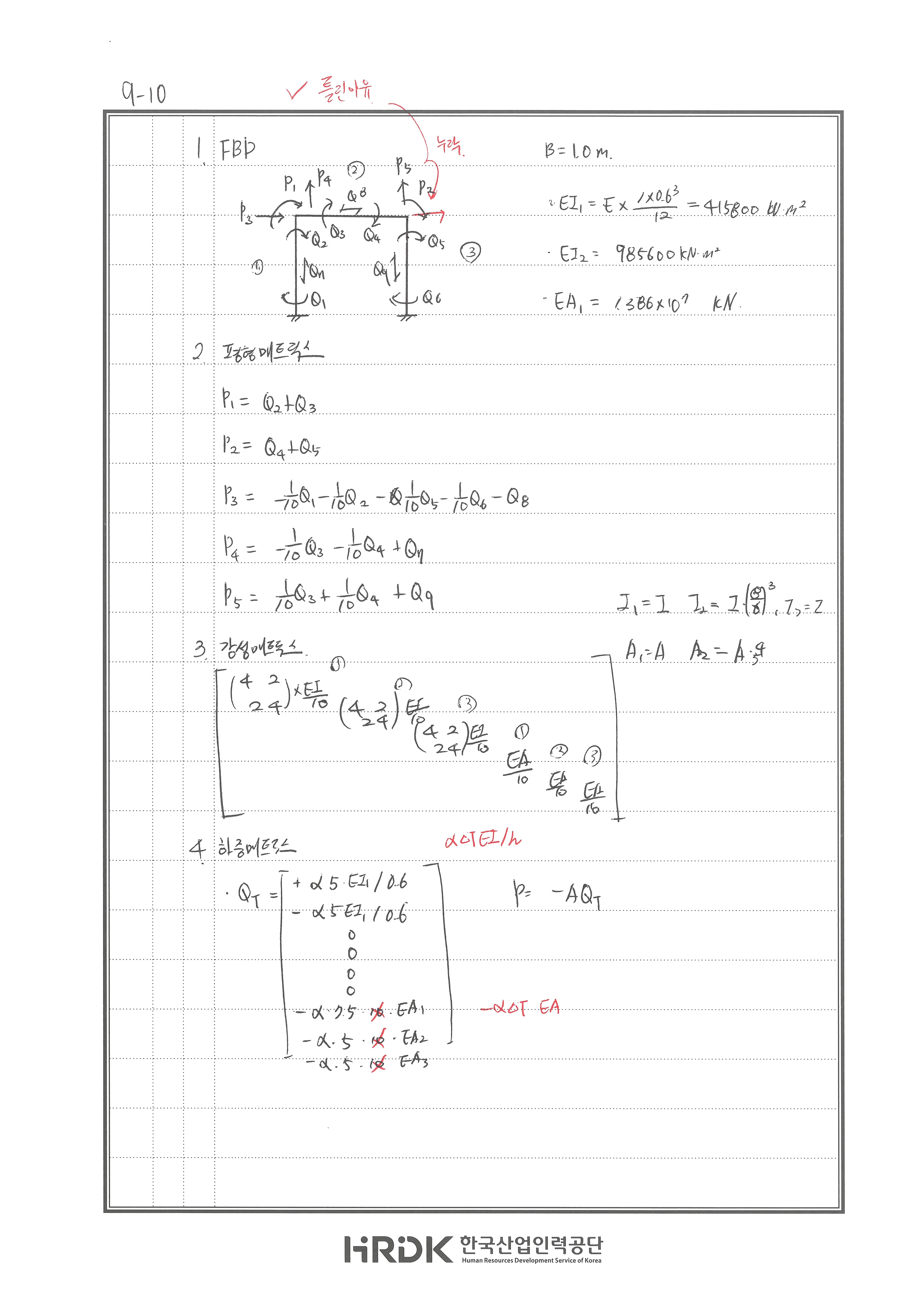 240704 X 온도변화에 에너지법 부호 숙지, 축력 누락