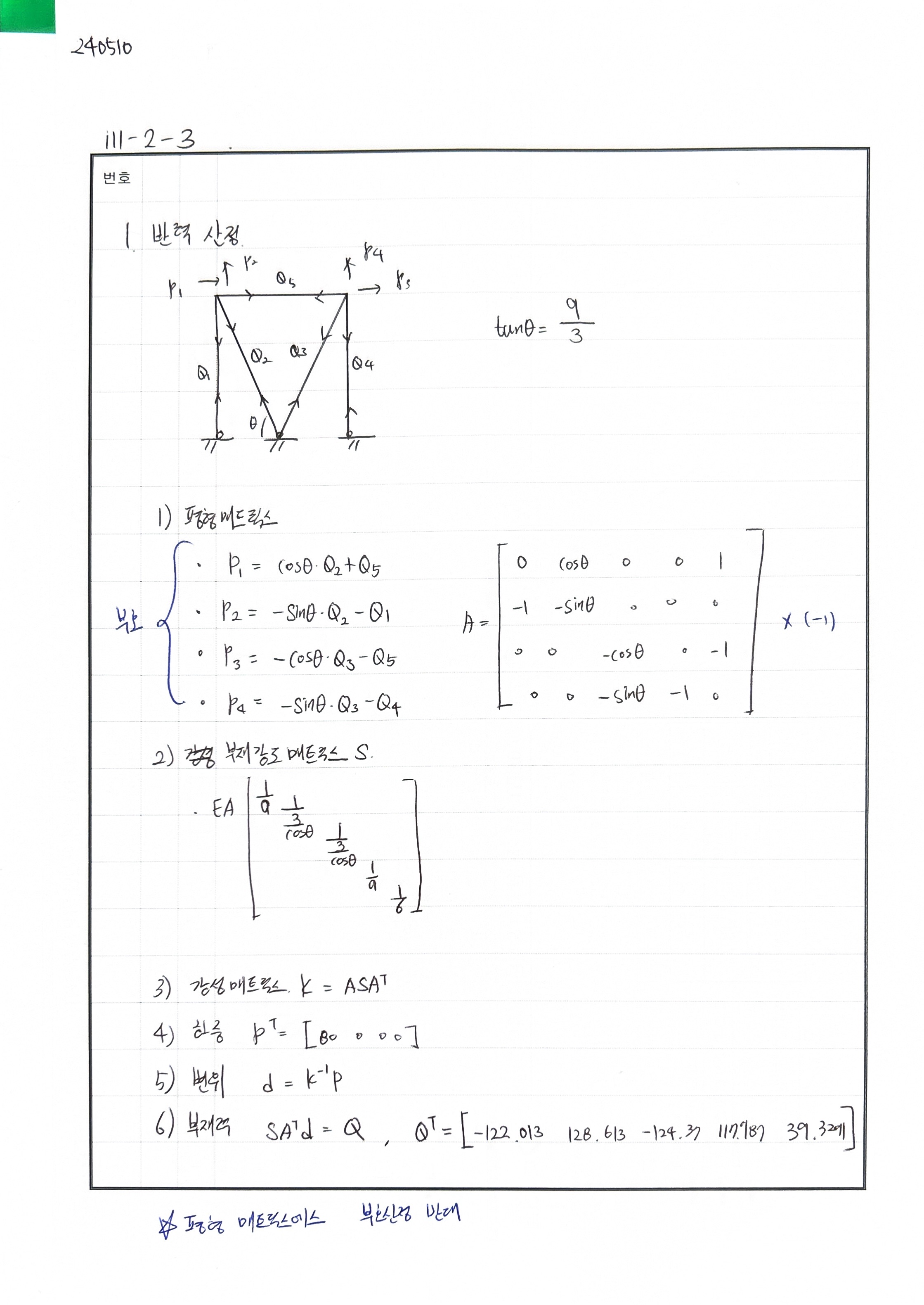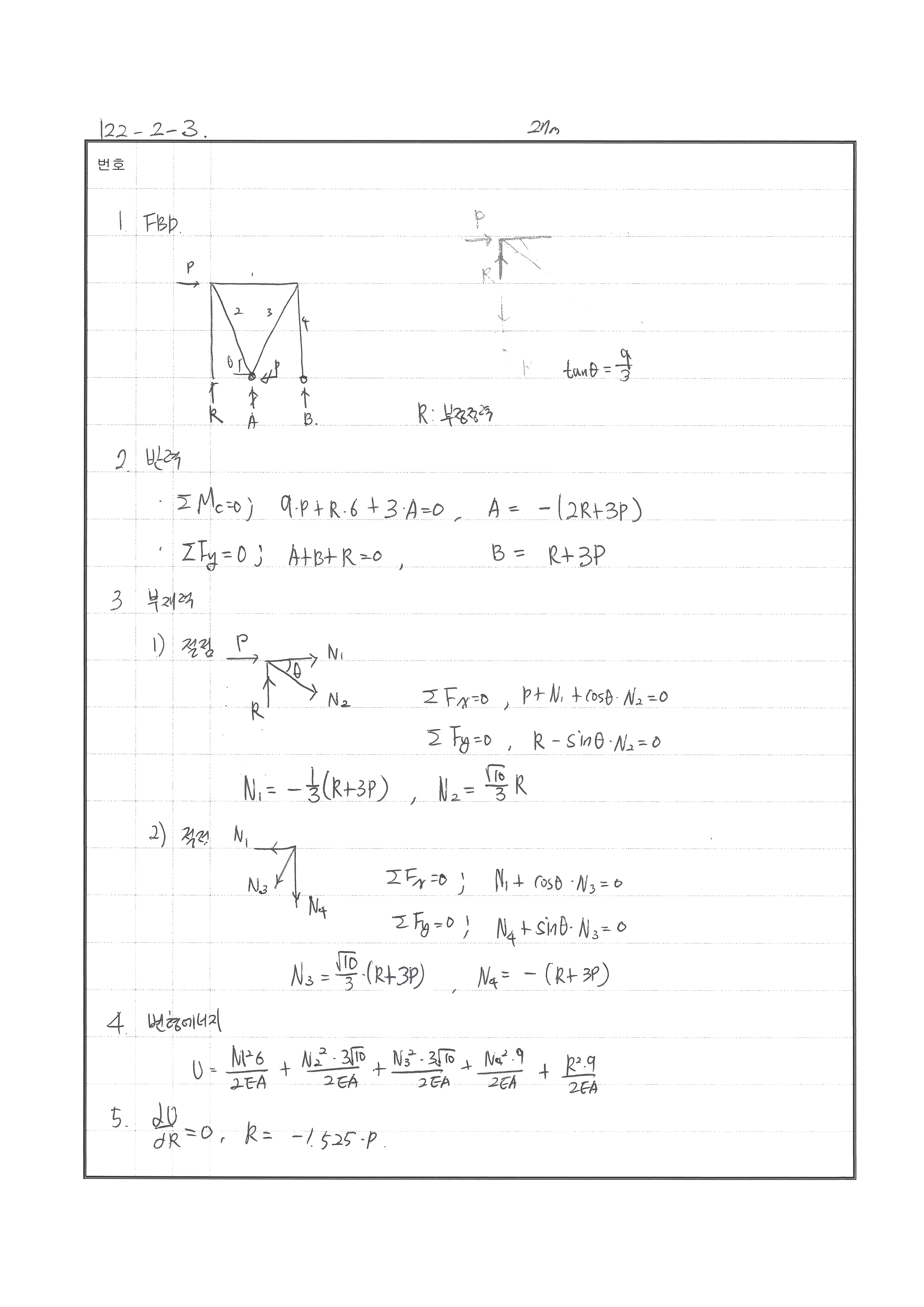 부정정 트러스 에너지법 혹은 변위매트릭스법을 이용해 반력을 산정 A 지점 인발 B 지점 수평력 C 지점 압축에 대한 기초설계를 하는 건데 B에 대한 설계가 애매해