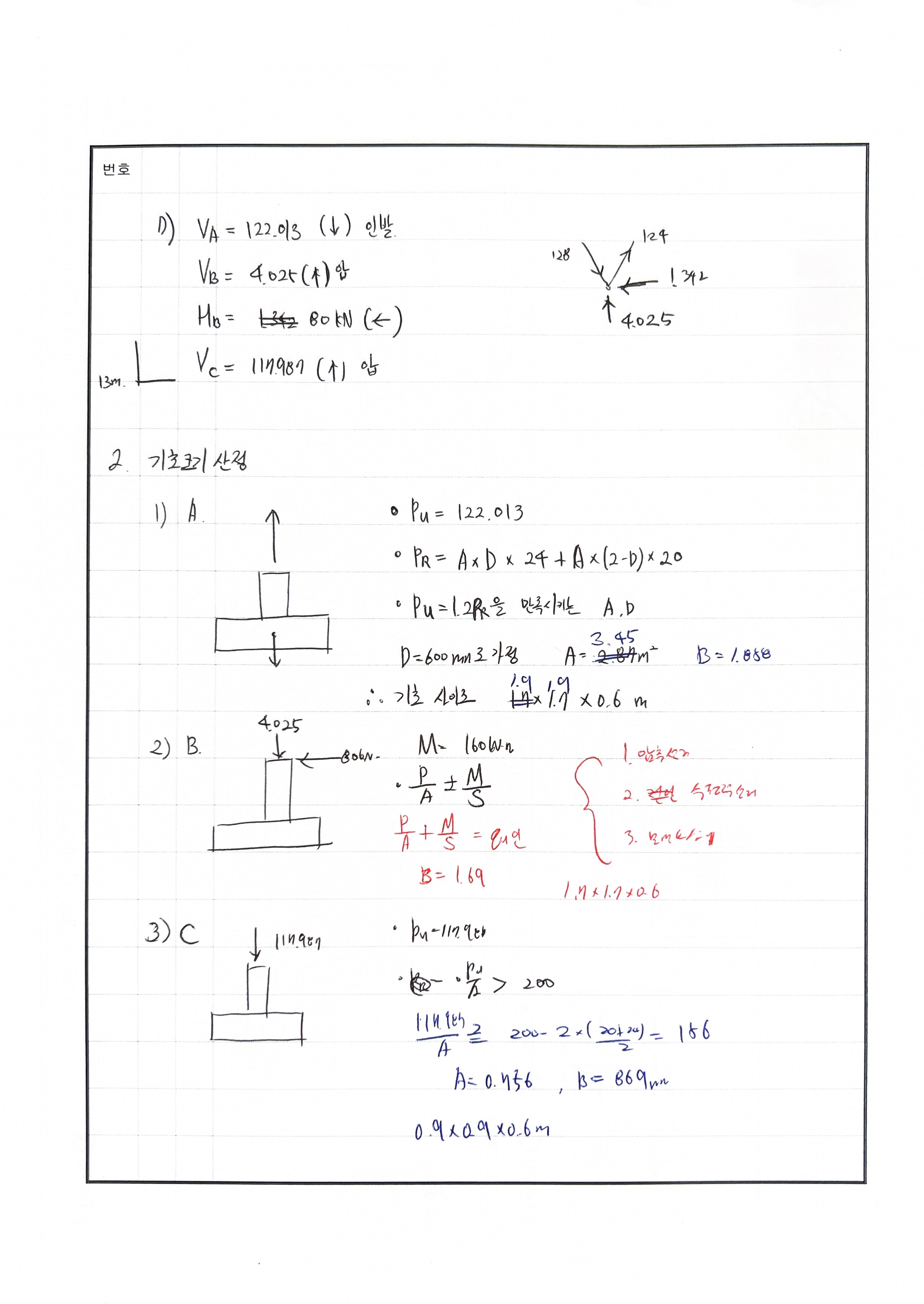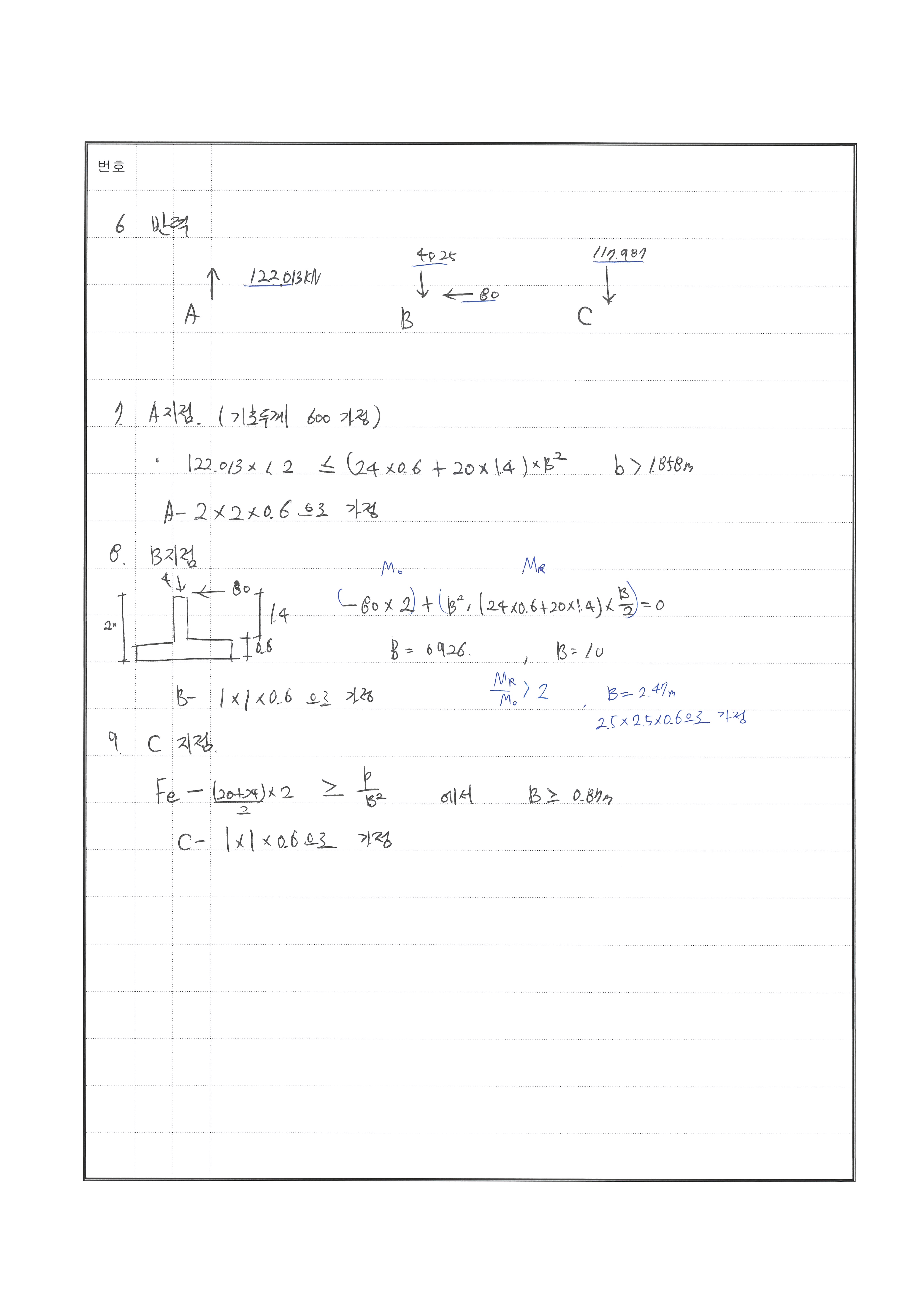 - 모멘트를 설계할 것인가 B지점에 대한 답 없음.