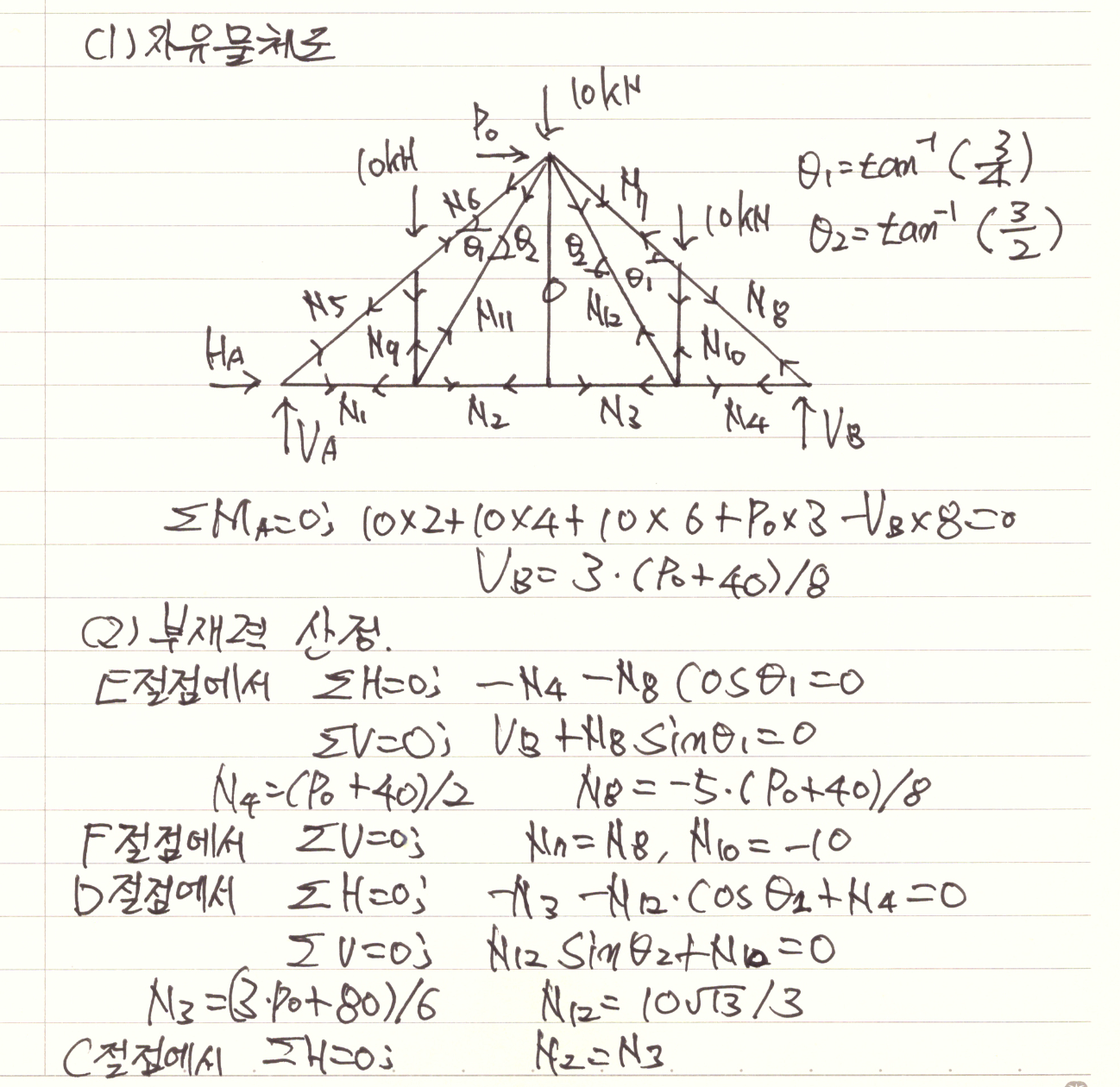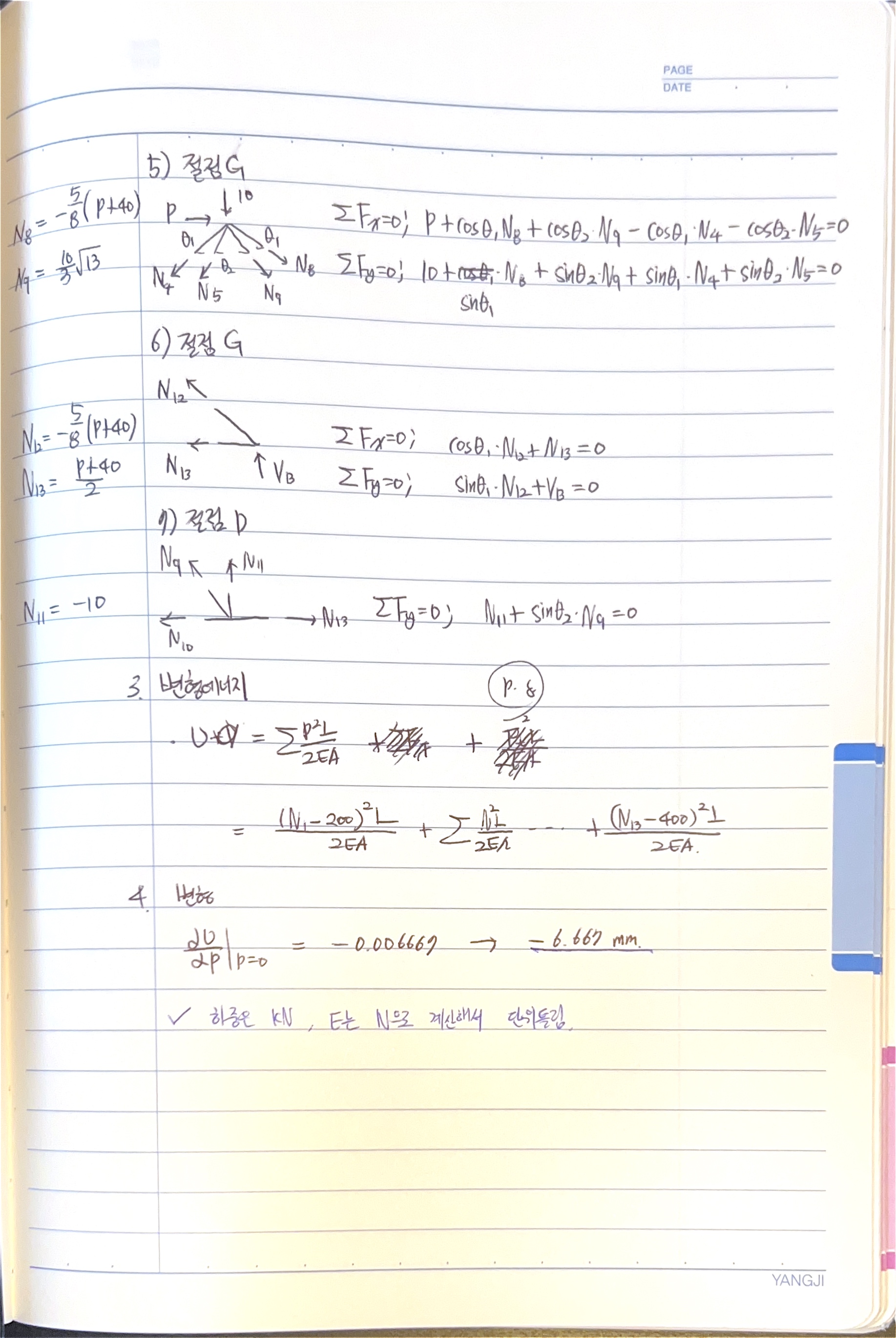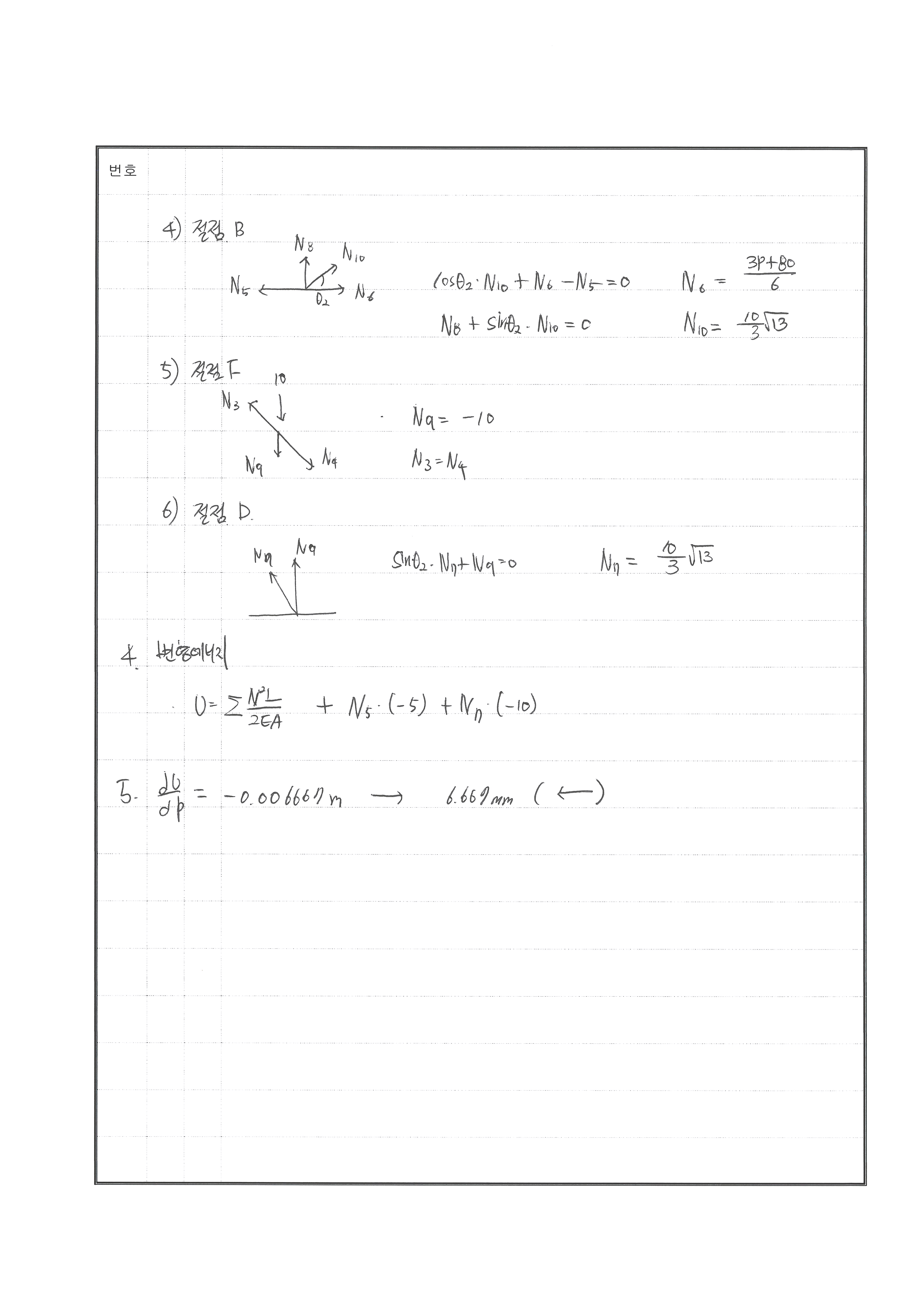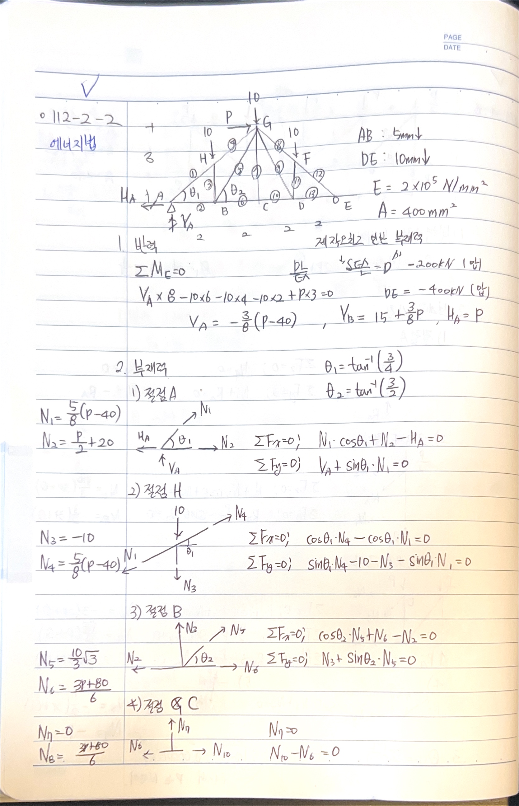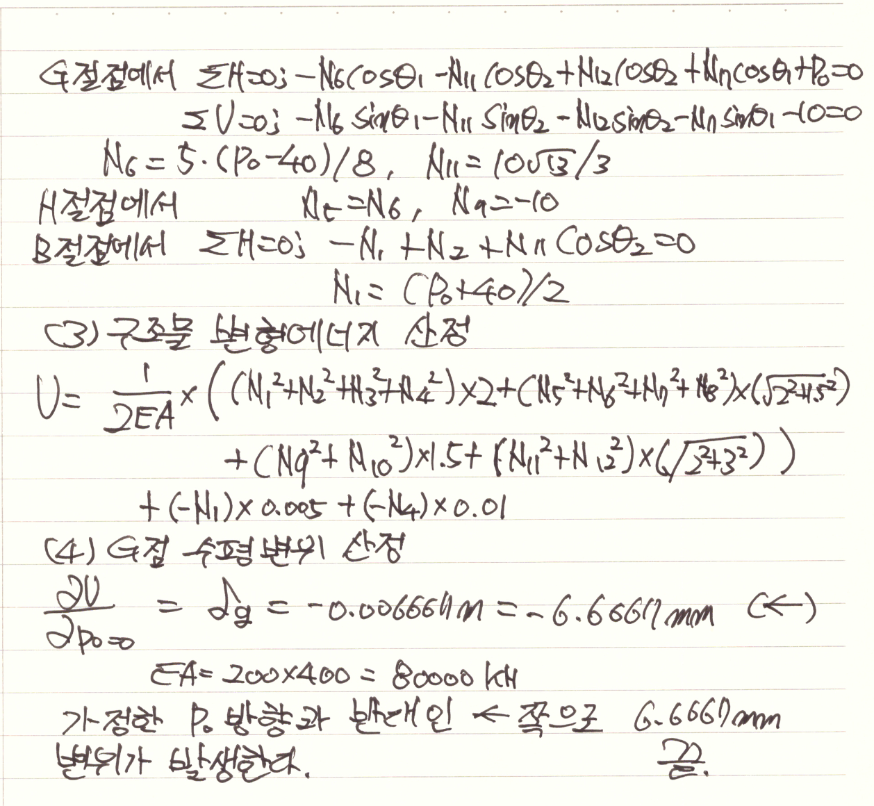 240407 풀이 1차 에너지법 틀림 2차 변위매트릭스법 : 방정식이 복잡 틀림 3차 에너지법 맞음..(근데 여기서도 실수) 240428 X m , mm 실수
