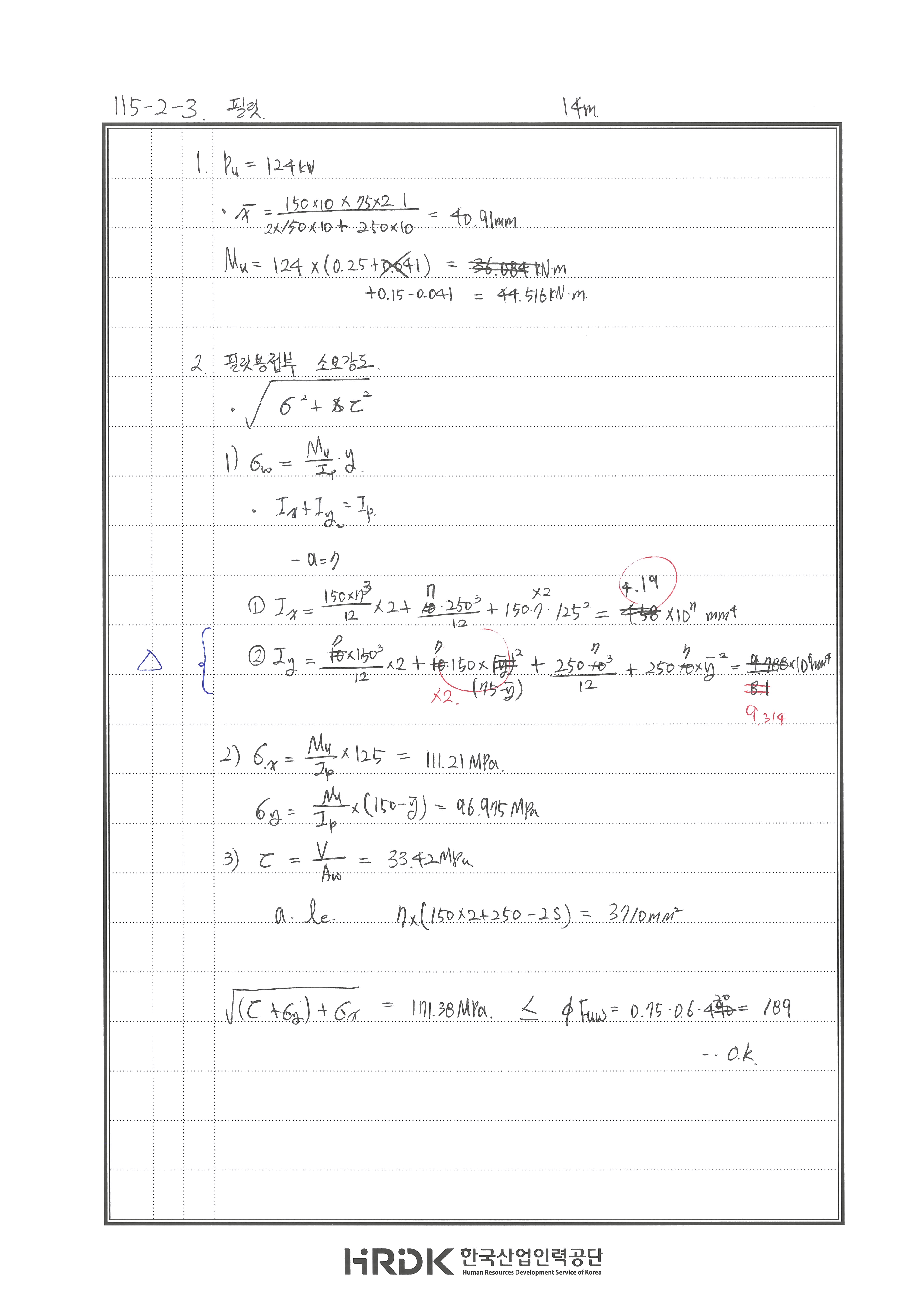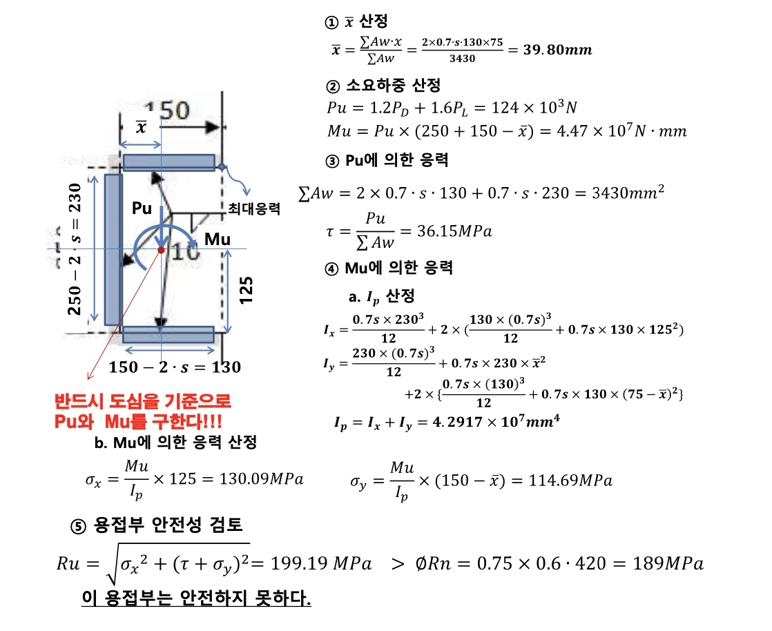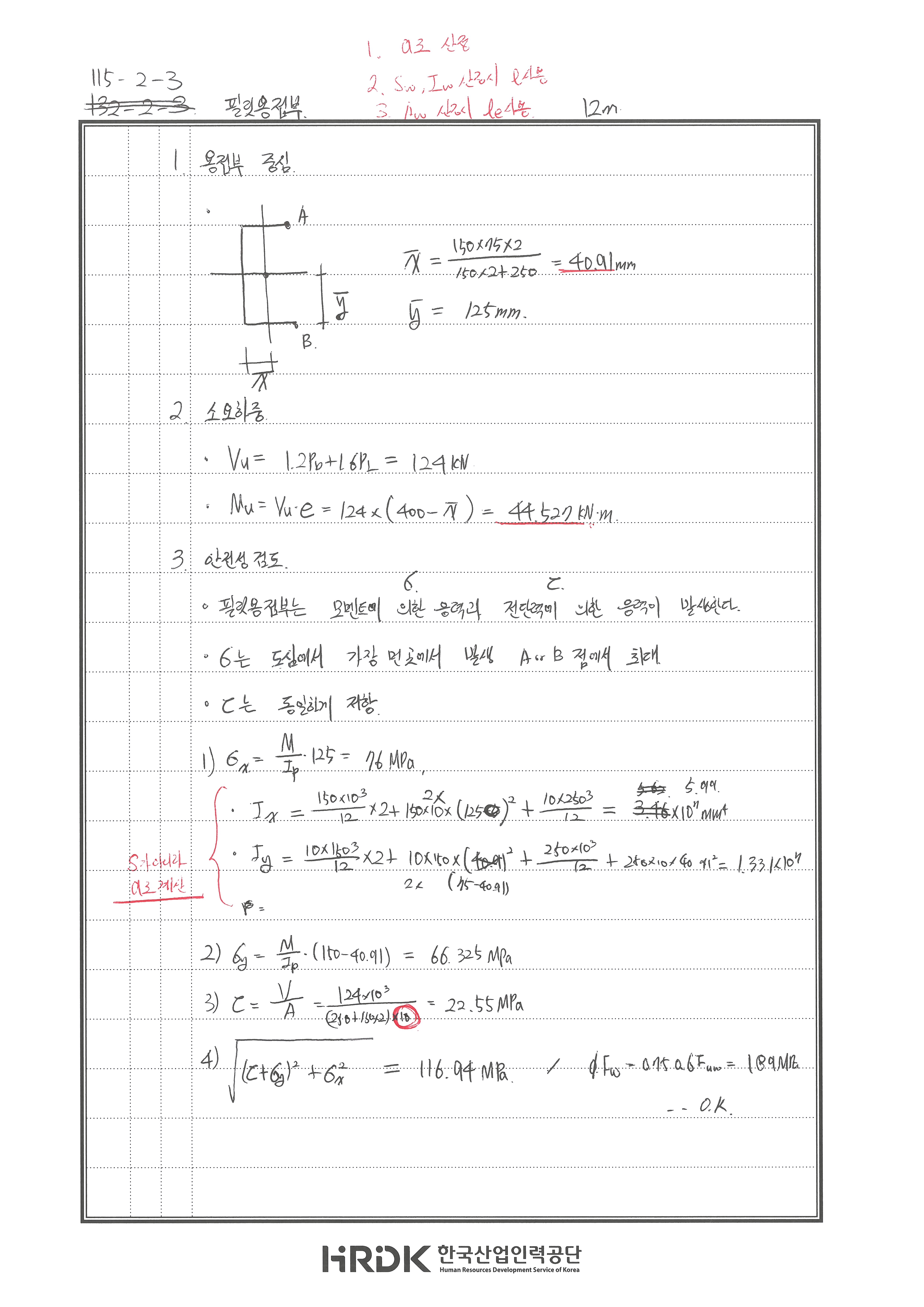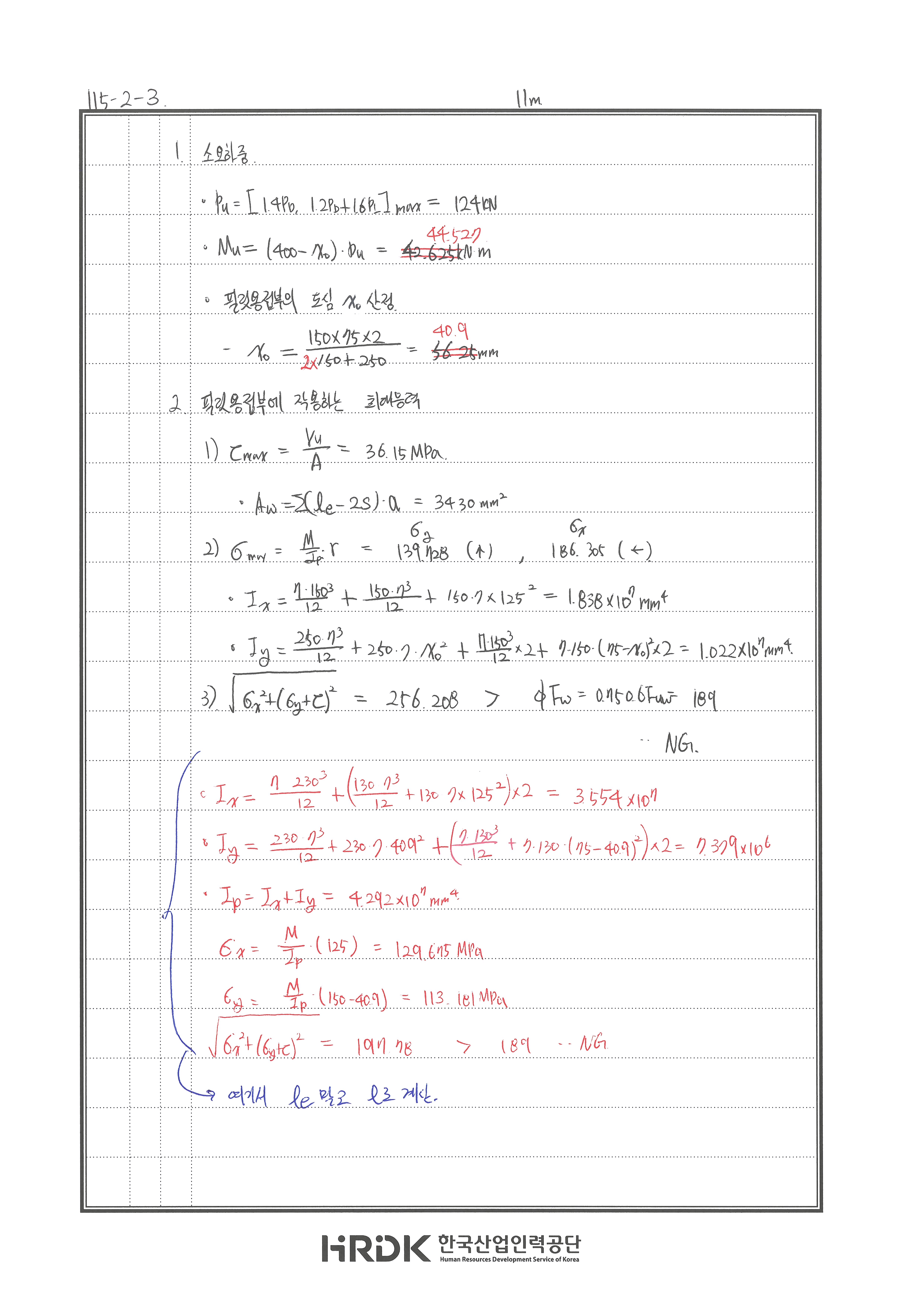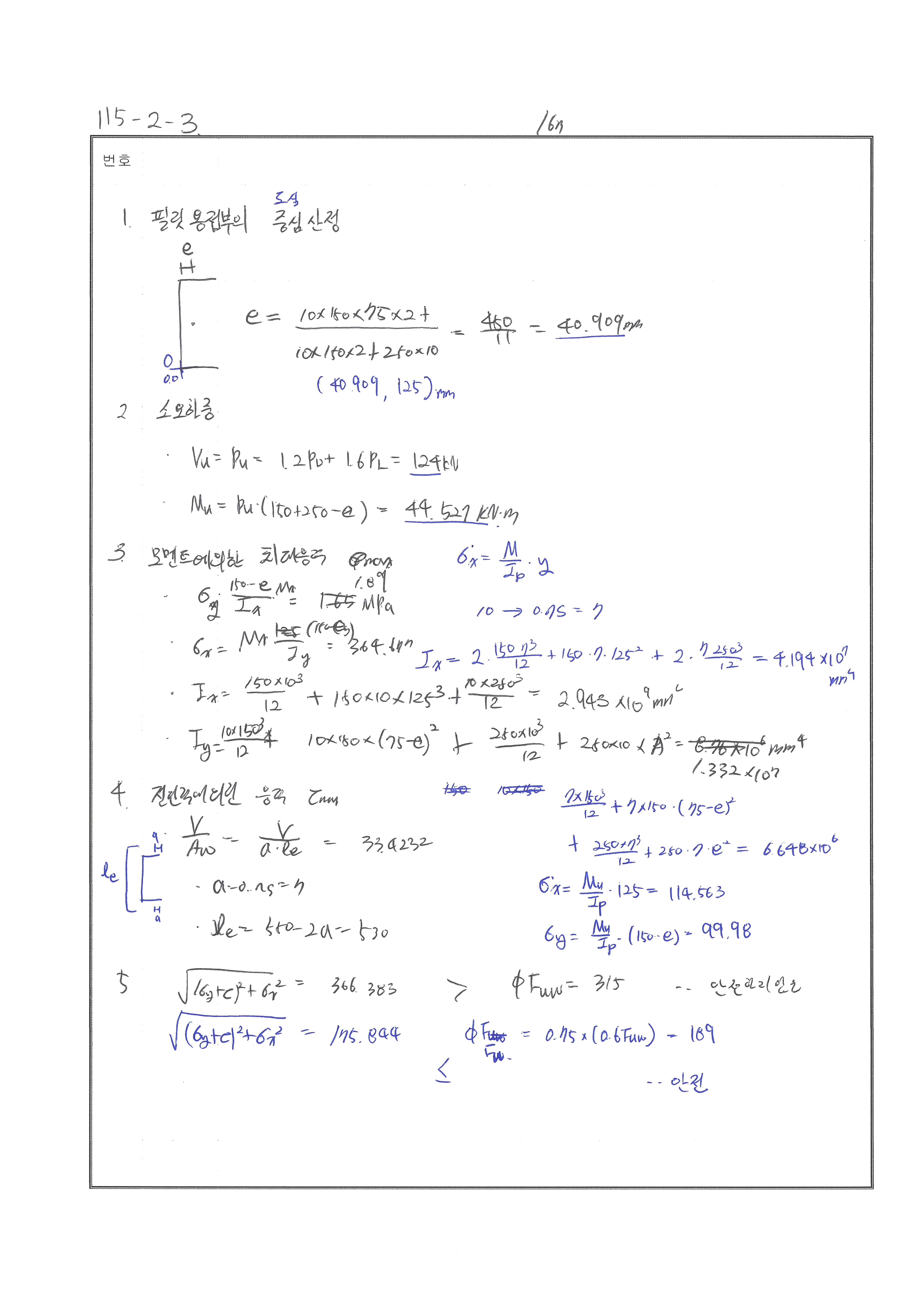 - Aw 산정시에는 le 240702 X 도심부터 틀림.. 240501 X 단면2차모멘트 구하는데서 실수