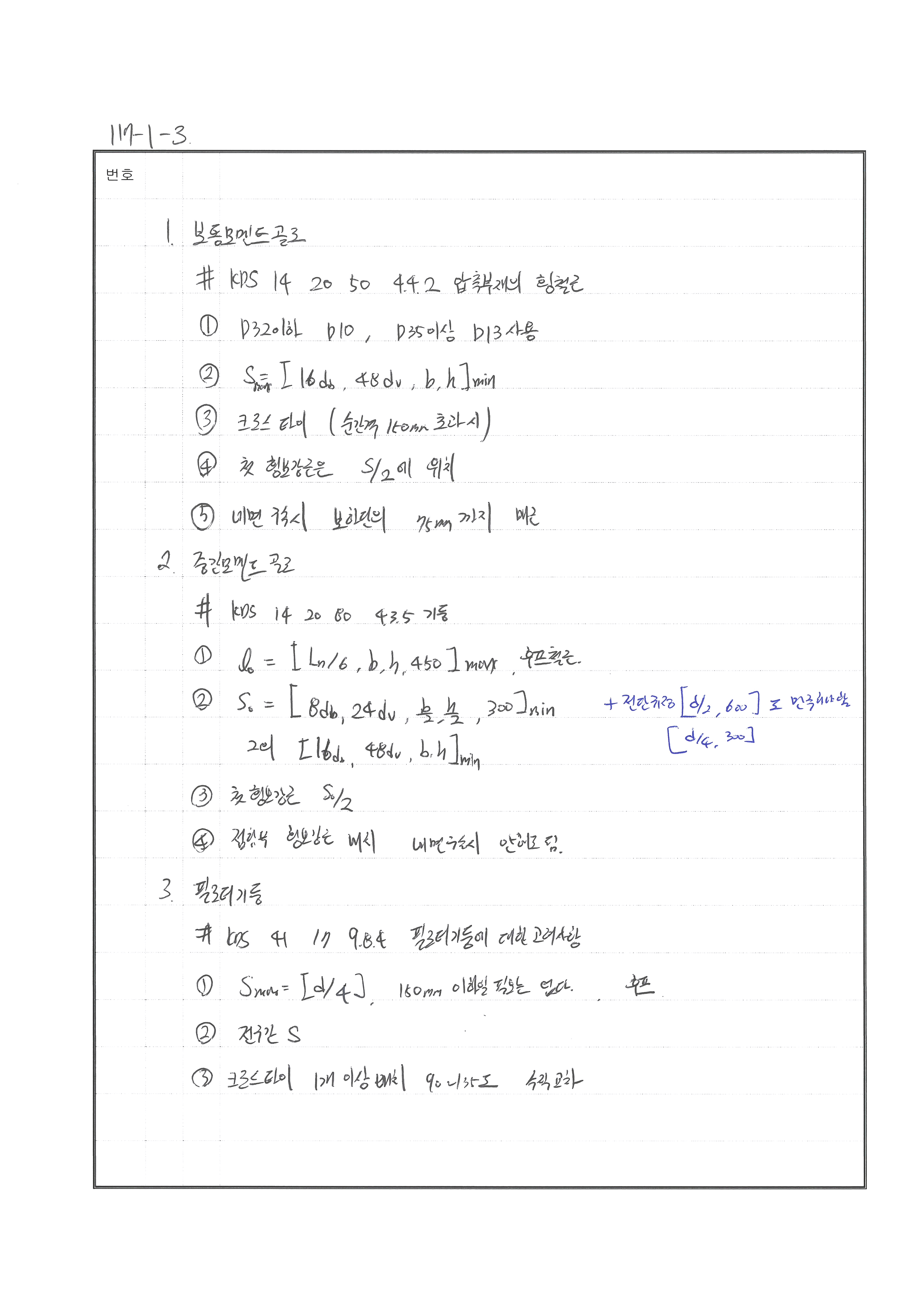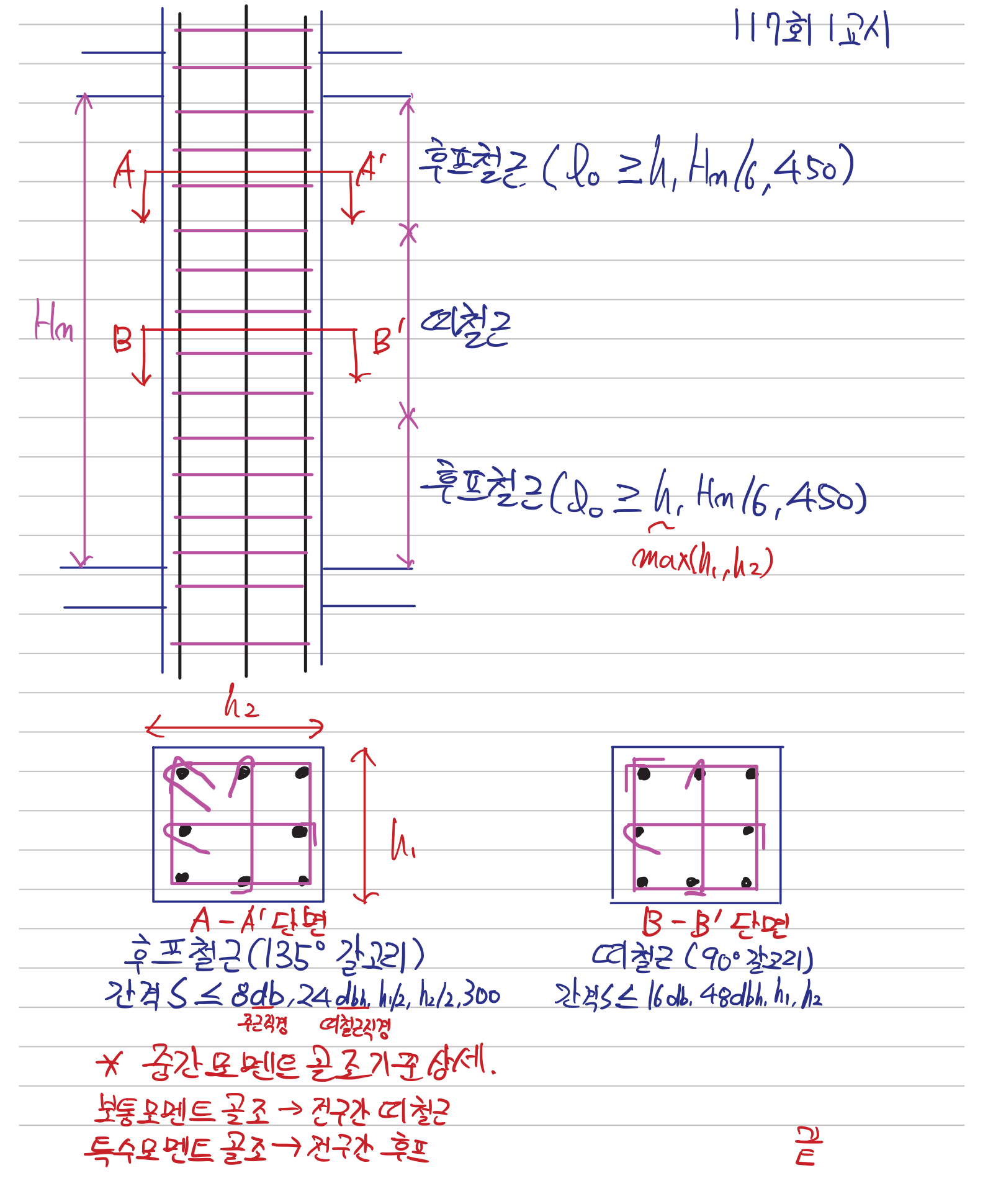 연성도에 따라 띠철근 및 후프 간격과 갈고리 상세에 대해서 설명하면 될 듯
