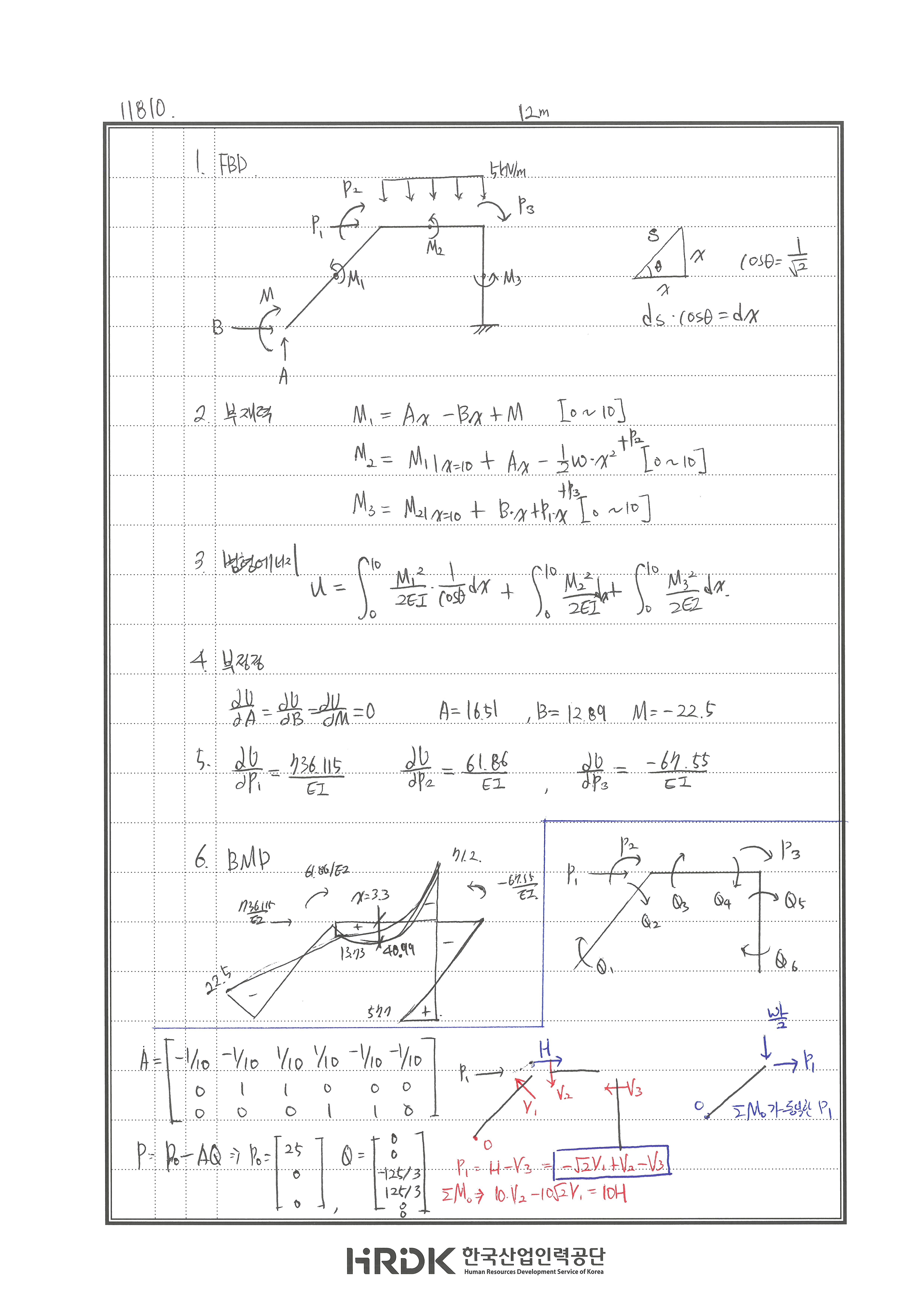 에너지법 변위매트릭스법 : 경사부재에서 변위매트릭스법 적용하는 방법 깔끔한 방법