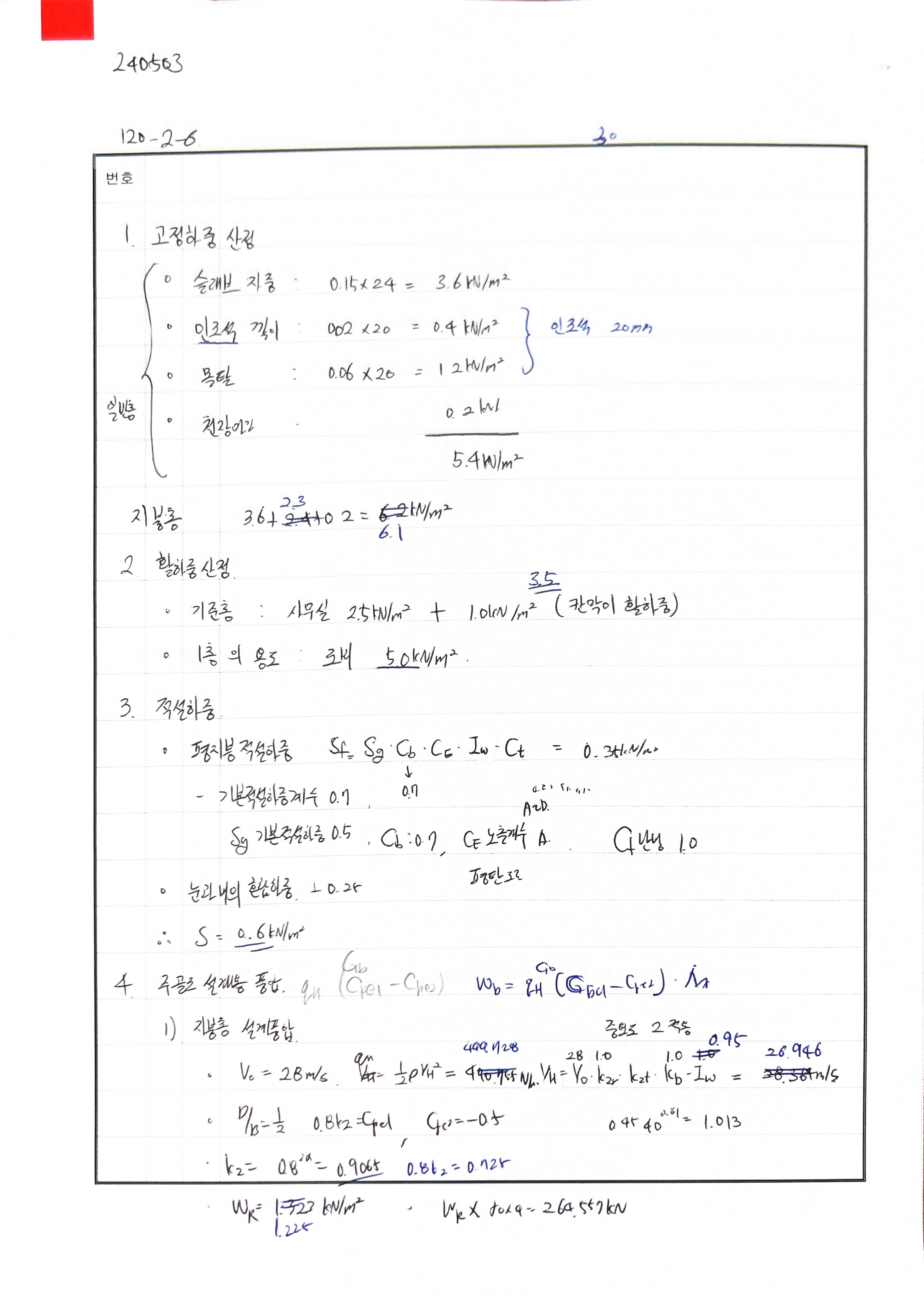 240513 X 풍하중만 풀었는데 틀림.. 240503 X