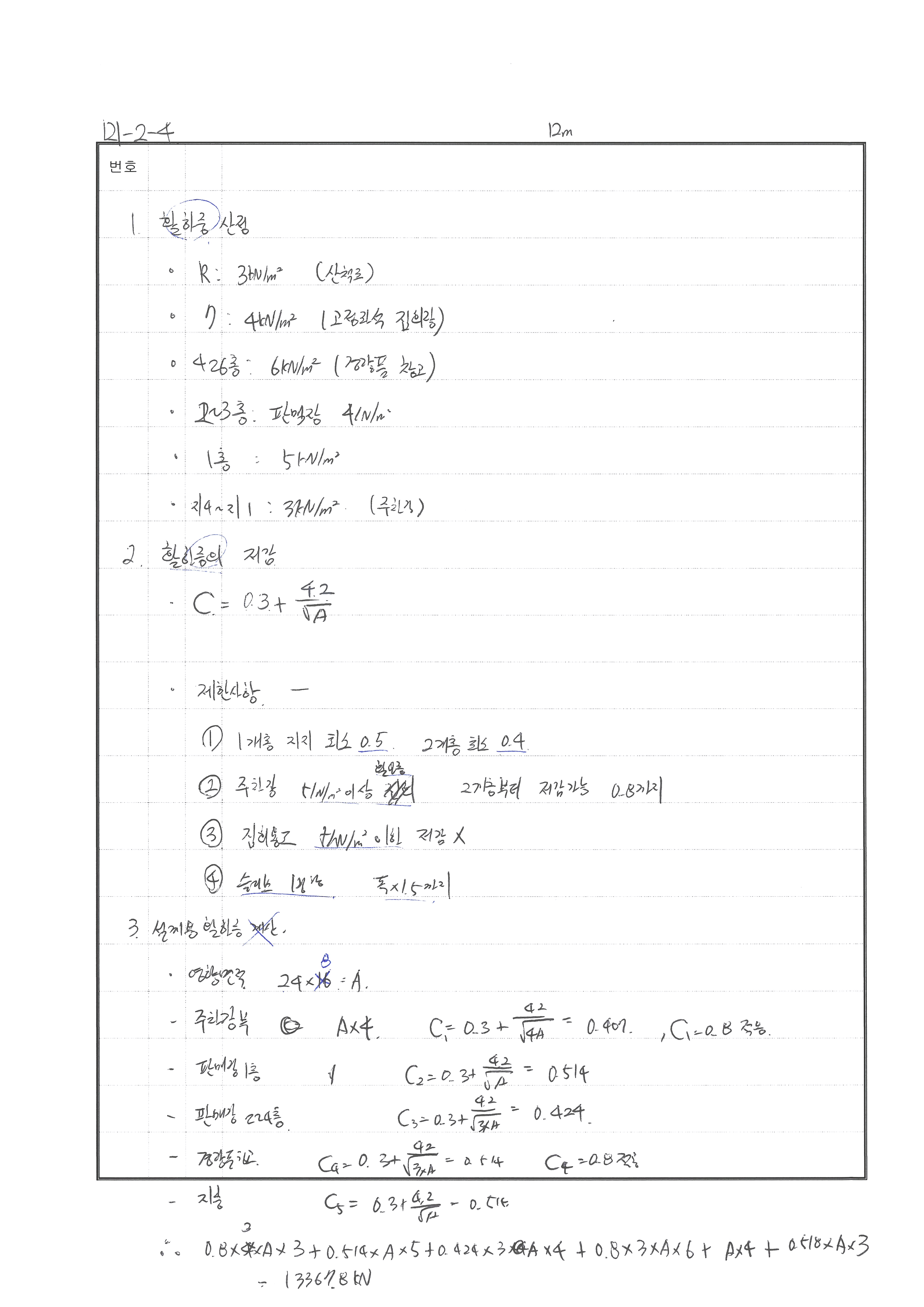 기본 등분포 활하중