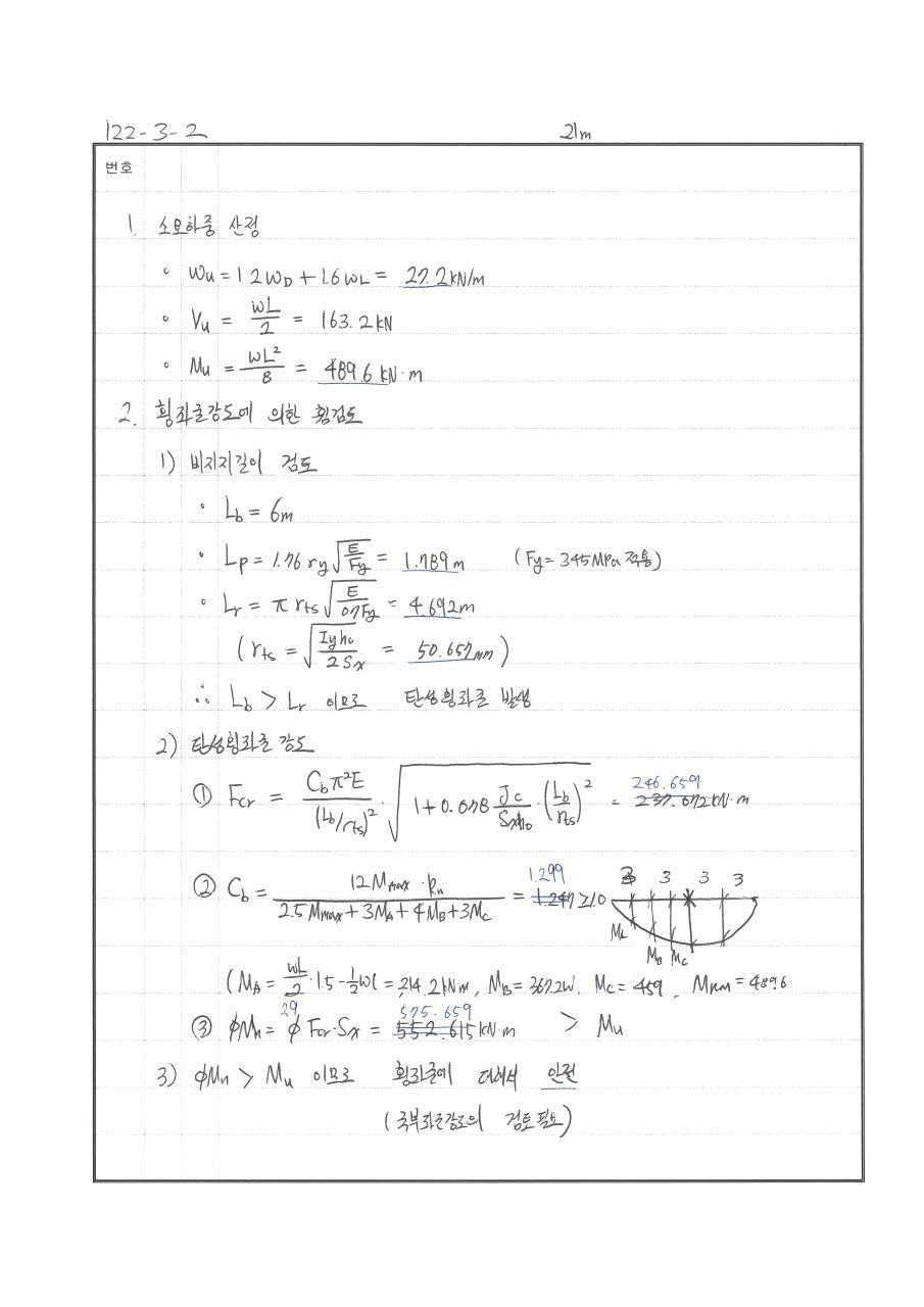 240702 X 모멘트 산정시 실수, 비지지길이 검토 실수