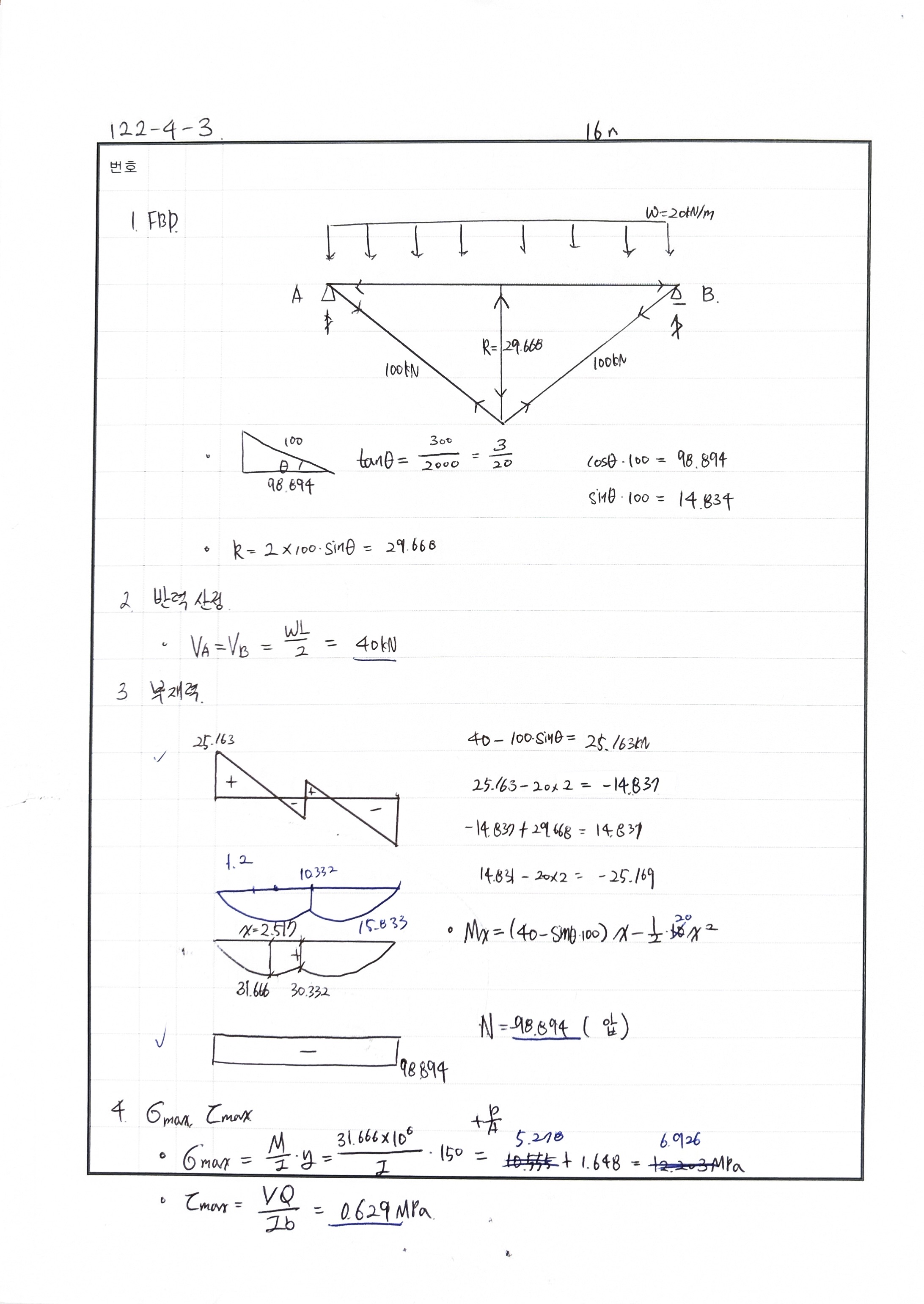 240530 O 240511 △ 마지막 모멘트 산정에서 실수 240430 X 장력실수