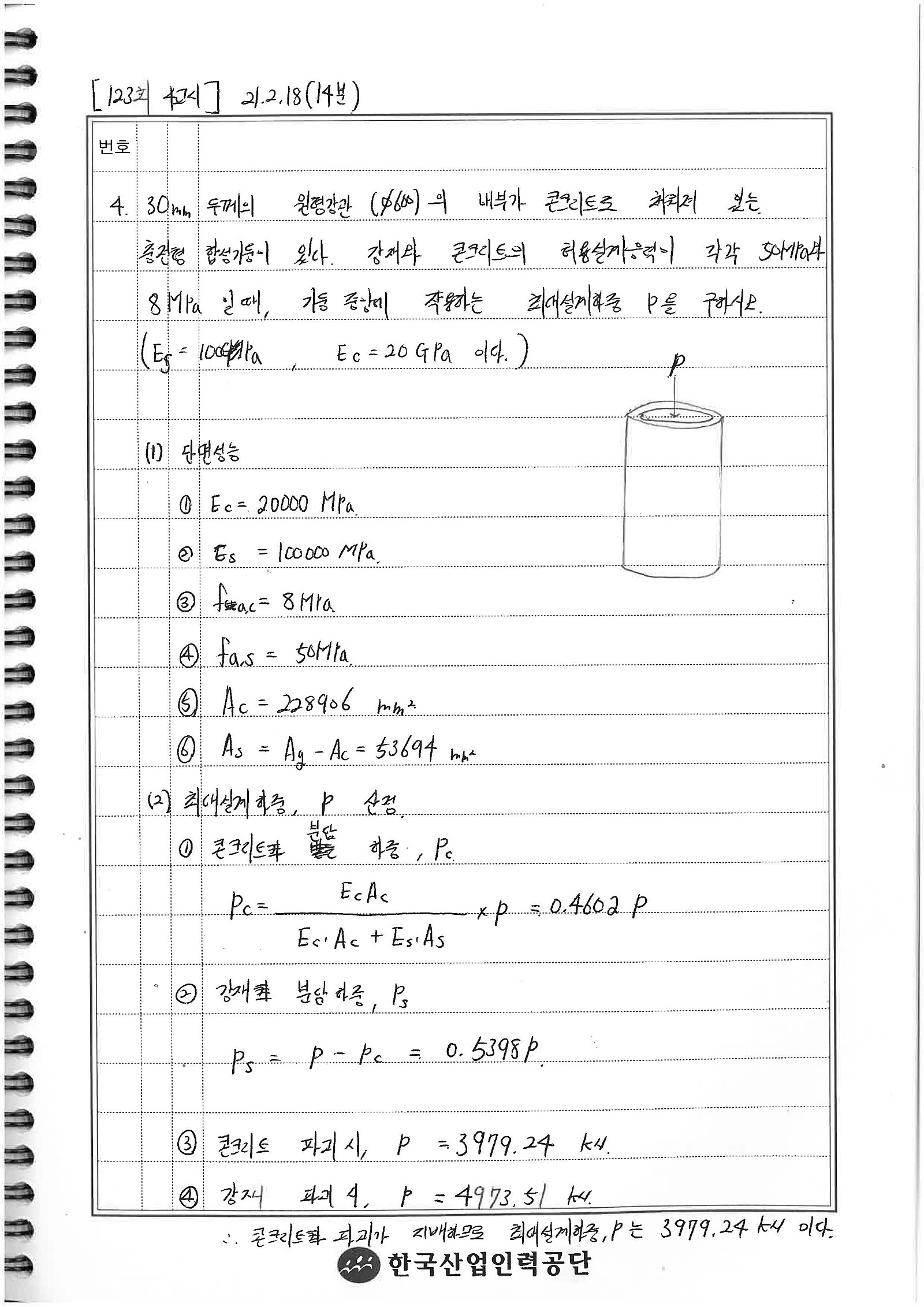 의 의미를 파악해야한다. 허용설계응력까지만 힘을 받겠다는 뜻 240509 O 복잡하게 풀이함..