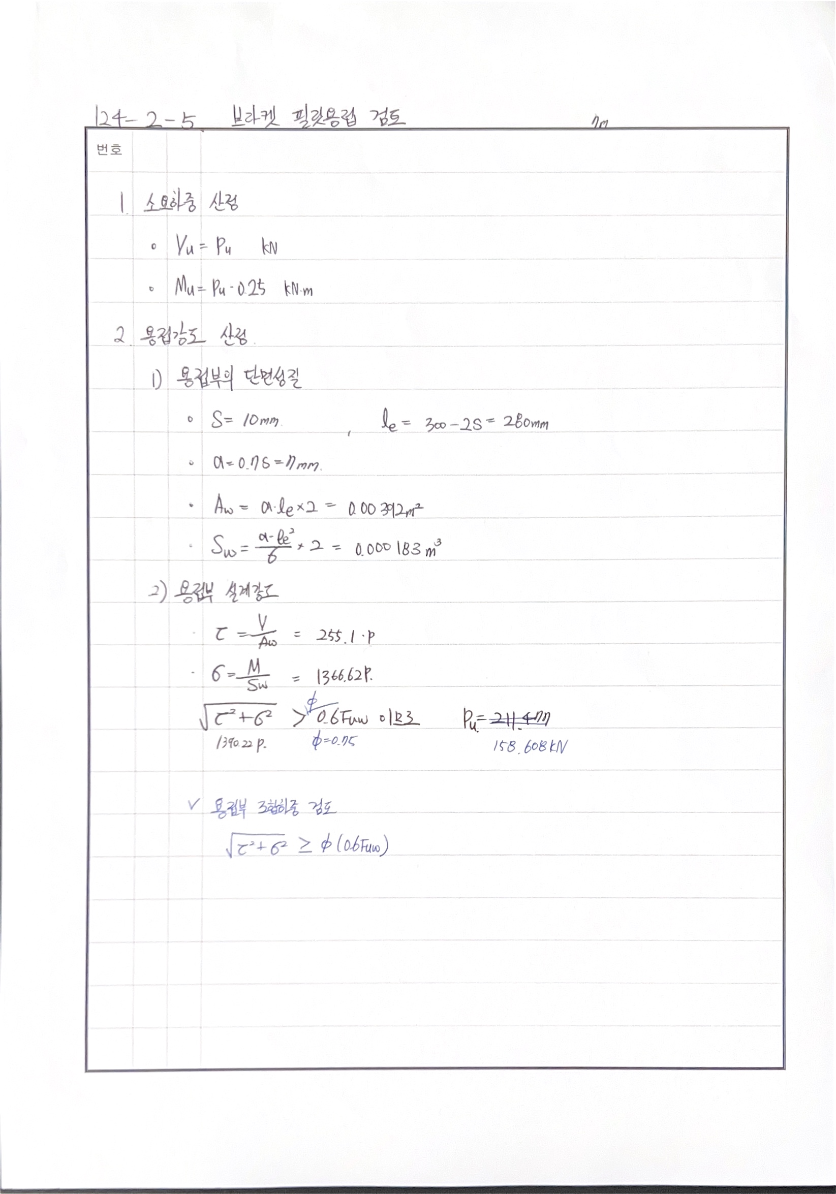 240704 X 2면인 경우 Le 에 2를 곱하지 말기 Sw 산정시 제곱해버림