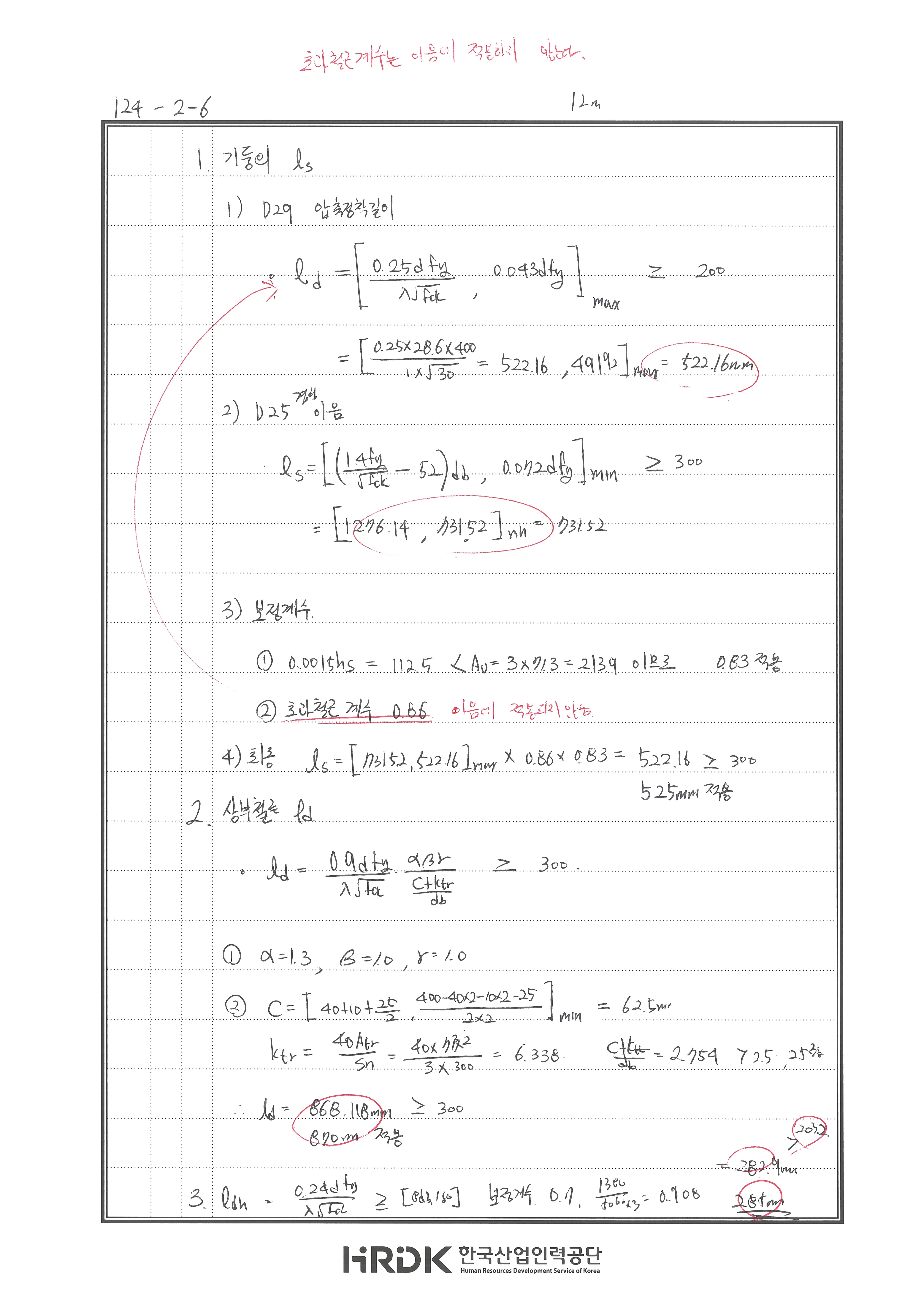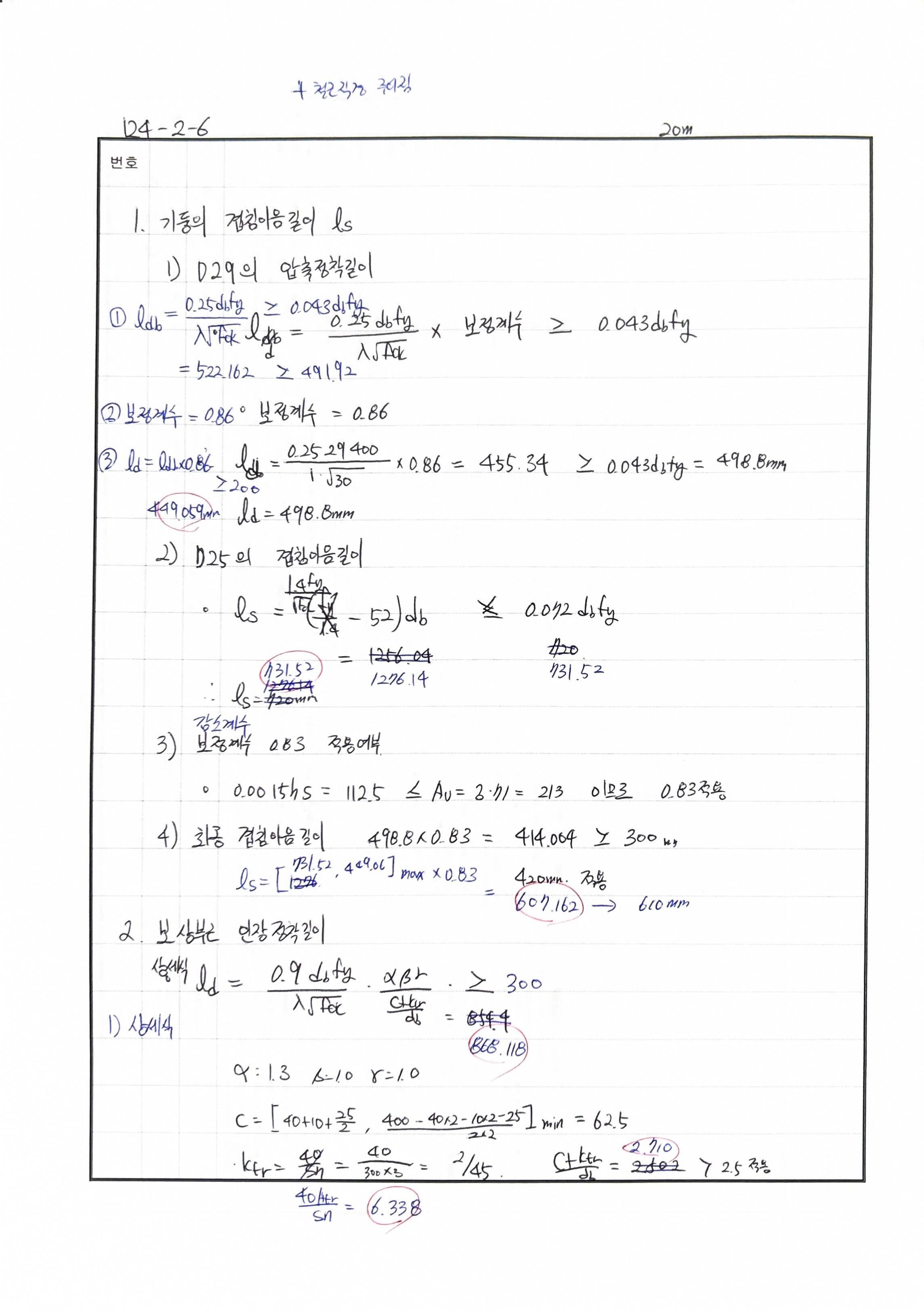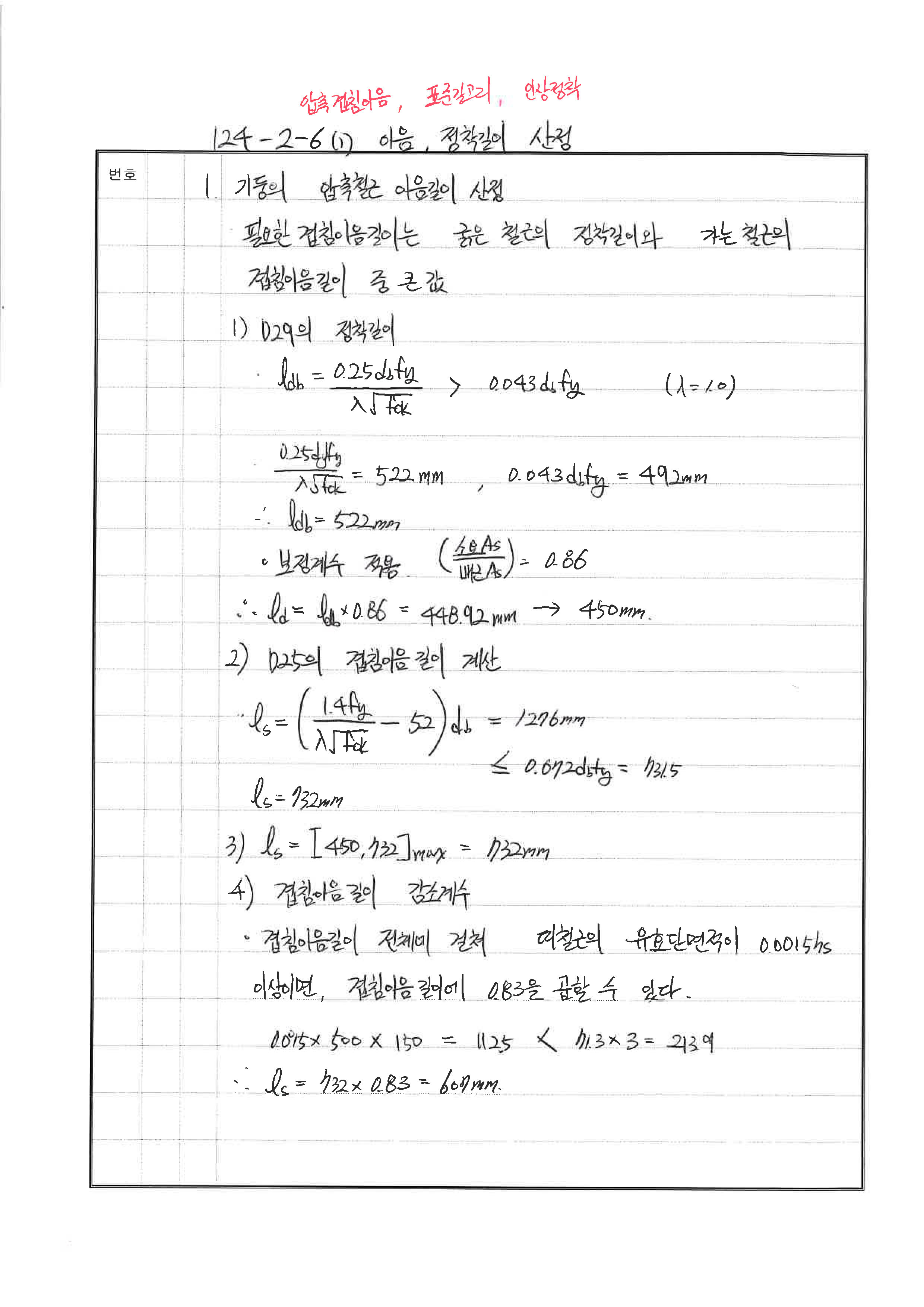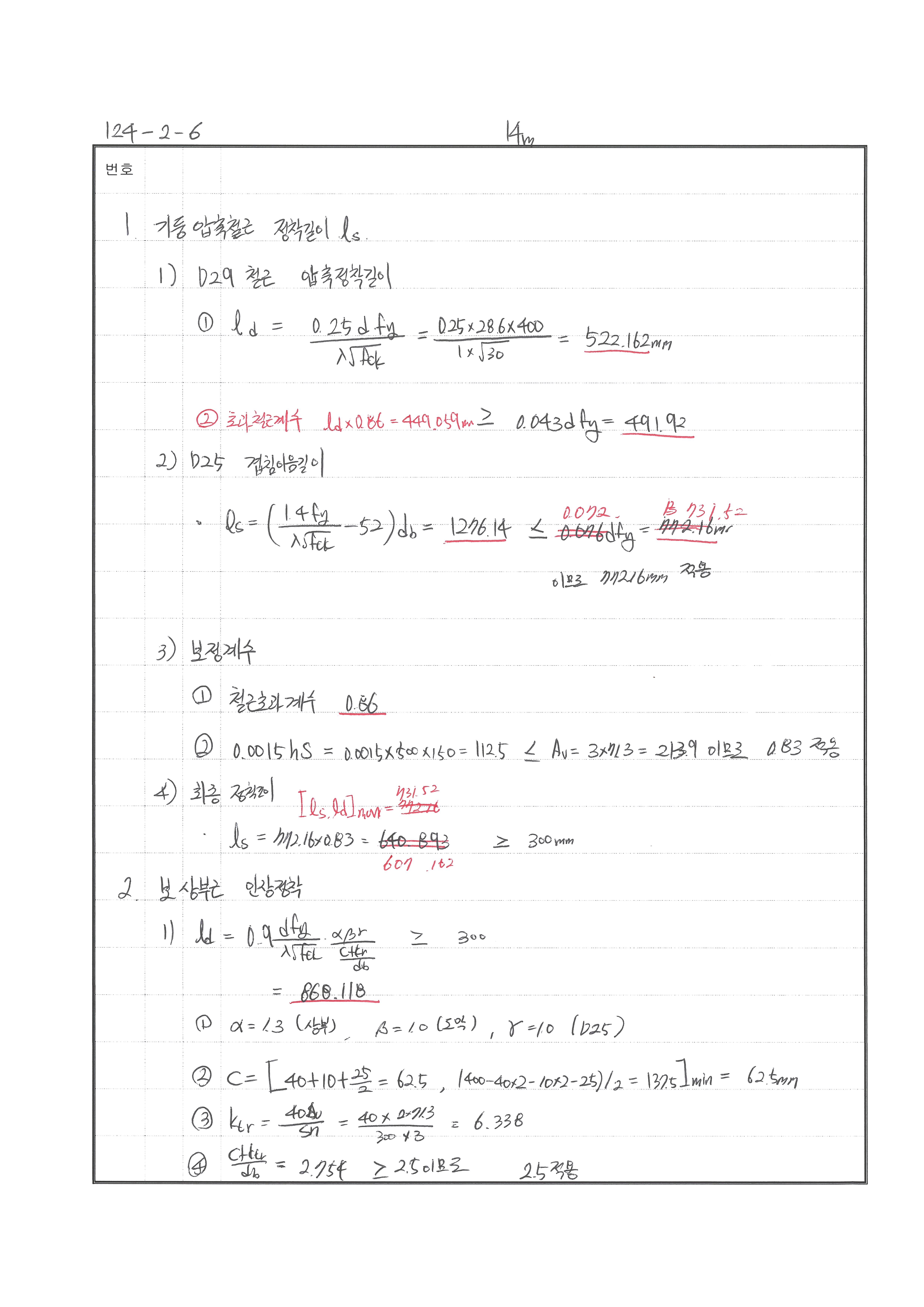 이음길이 산정 시 초과철근계수 사용하지 않음 240530 △ 압축정착길이 산정시 초과철근계수 누락
