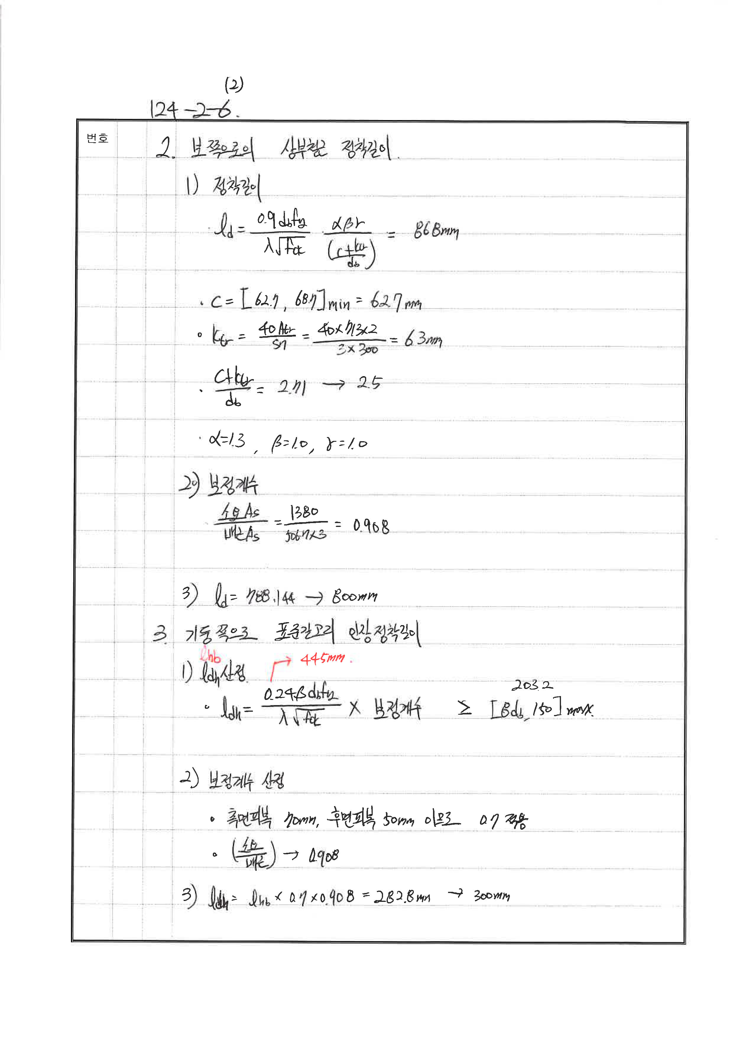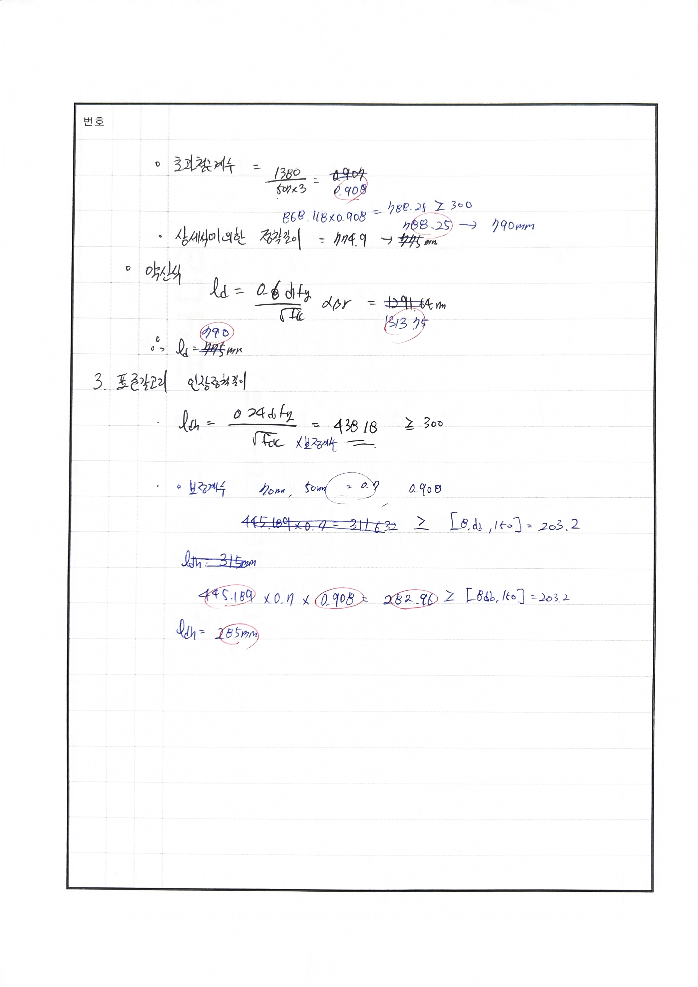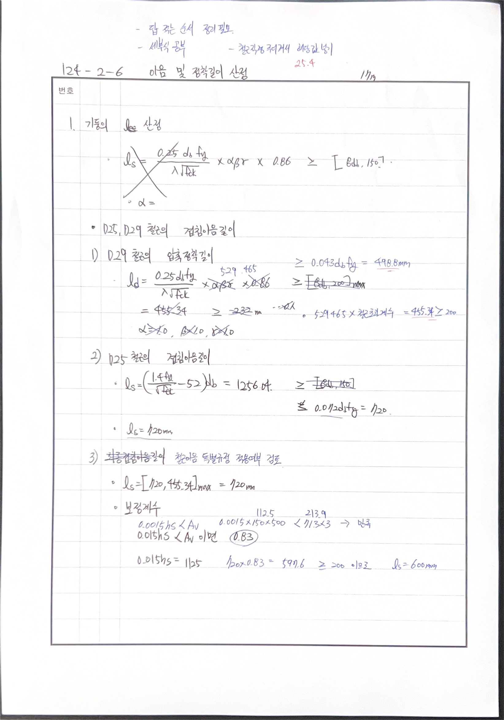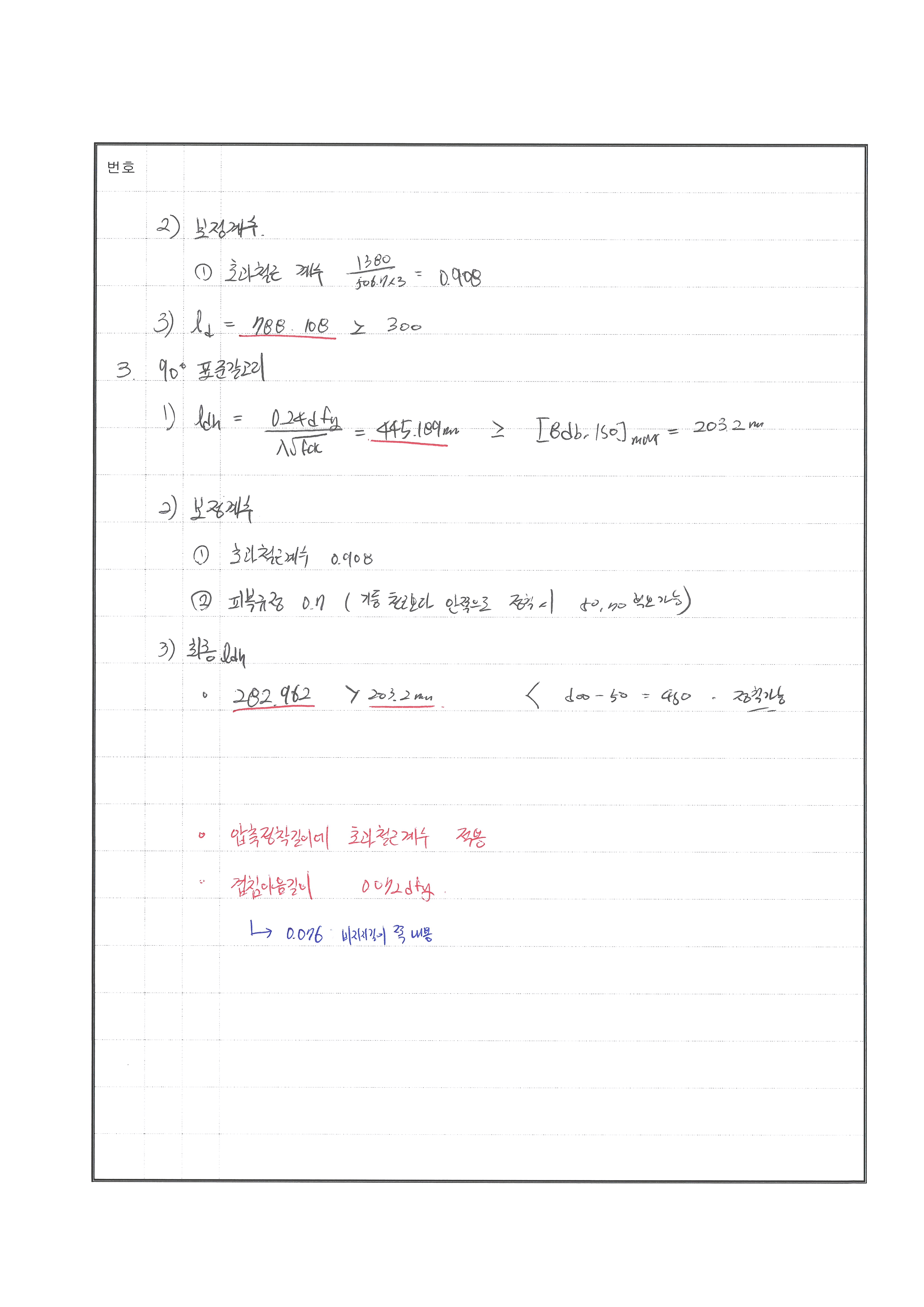 이음길이 산정 시 초과철근계수 사용하지 않음 240530 △ 압축정착길이 산정시 초과철근계수 누락