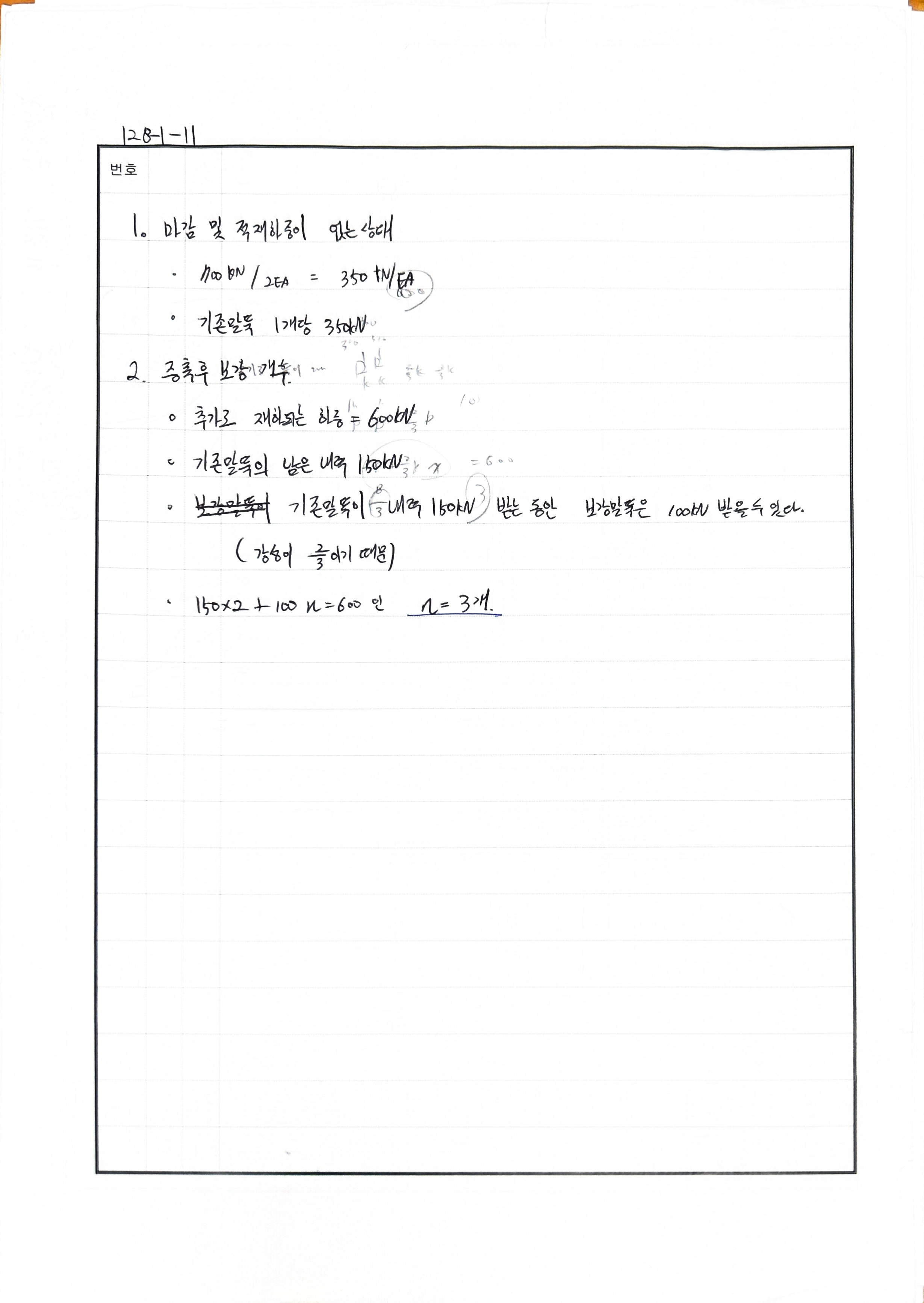 기존말뚝이 고정하중을 지지하고 추가되는 하중에 대해 강성비로 하중을 분담하는 개념으로 접근 시 말뚝은 3개 필요함 240506 O