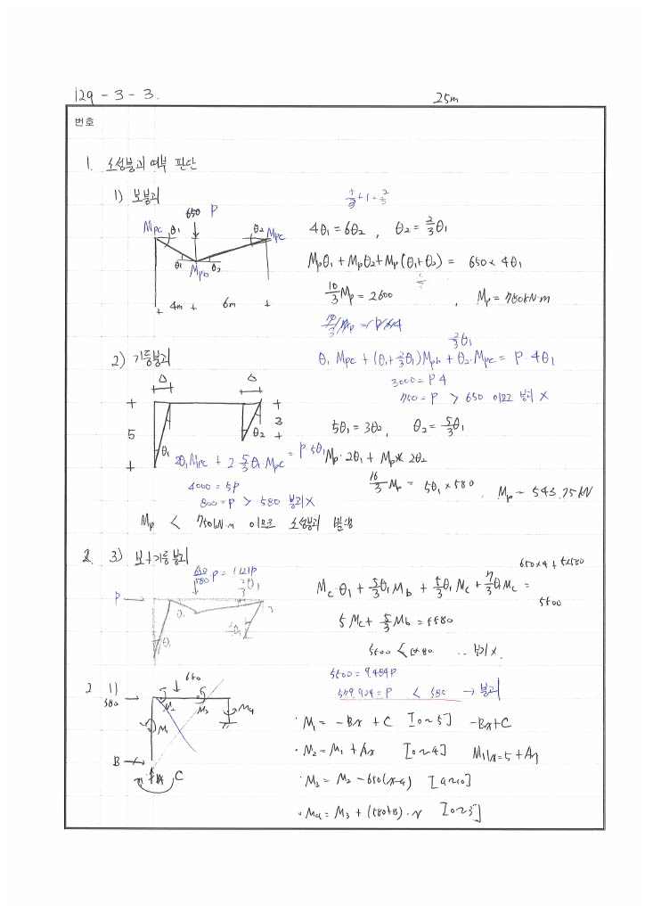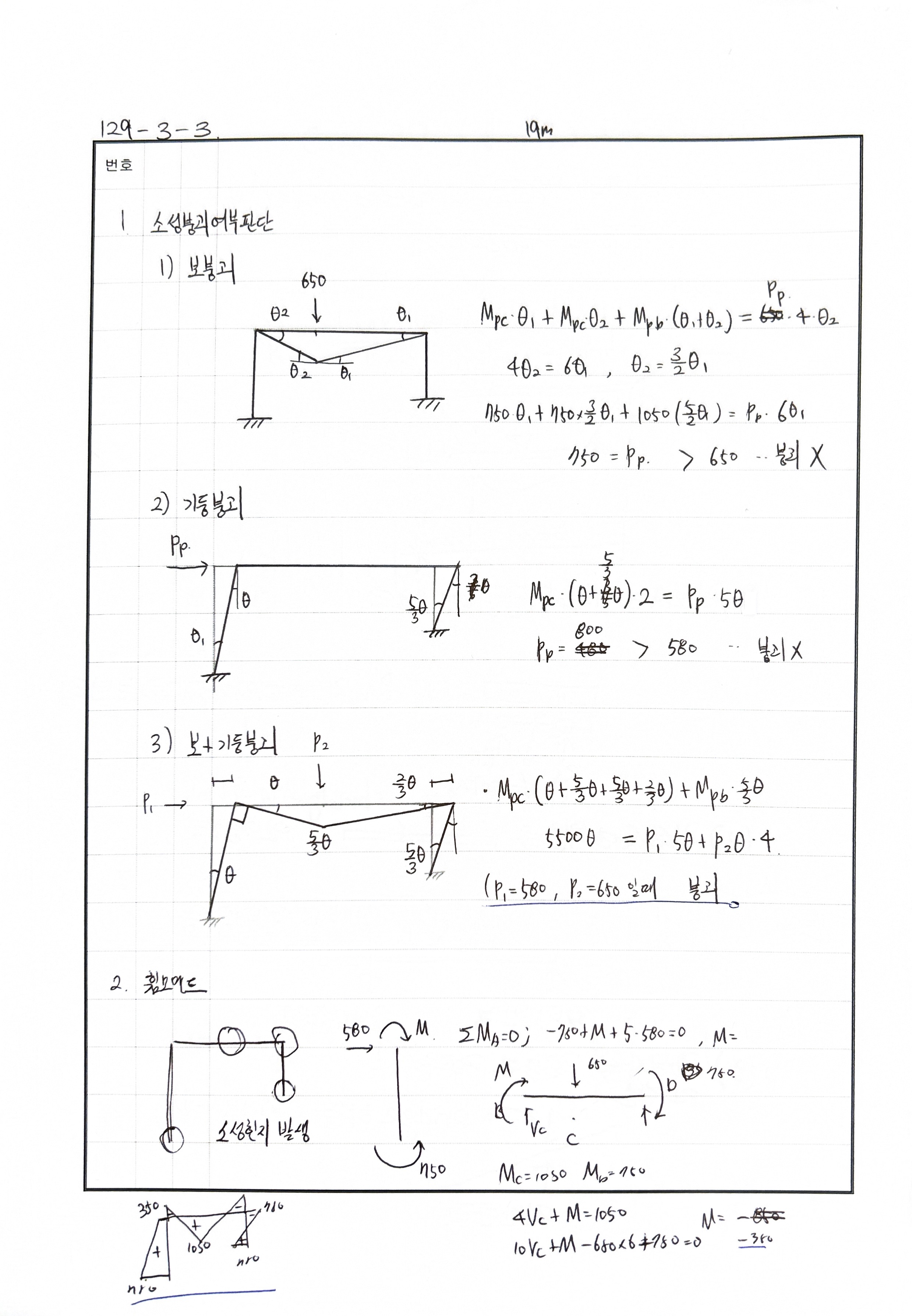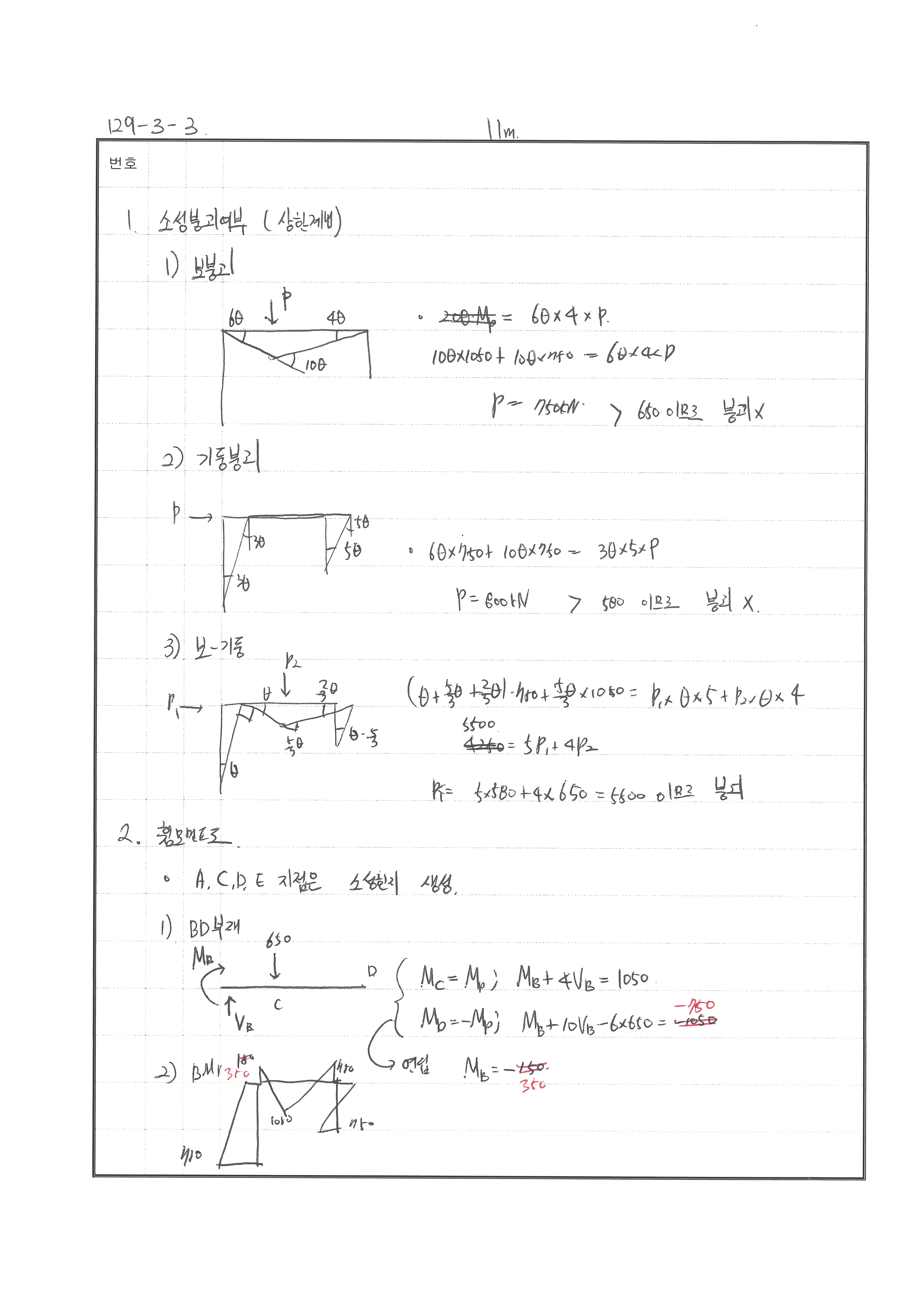 240620 △ 실수 240508 O 240430 X 소성모멘트 산정 미숙지