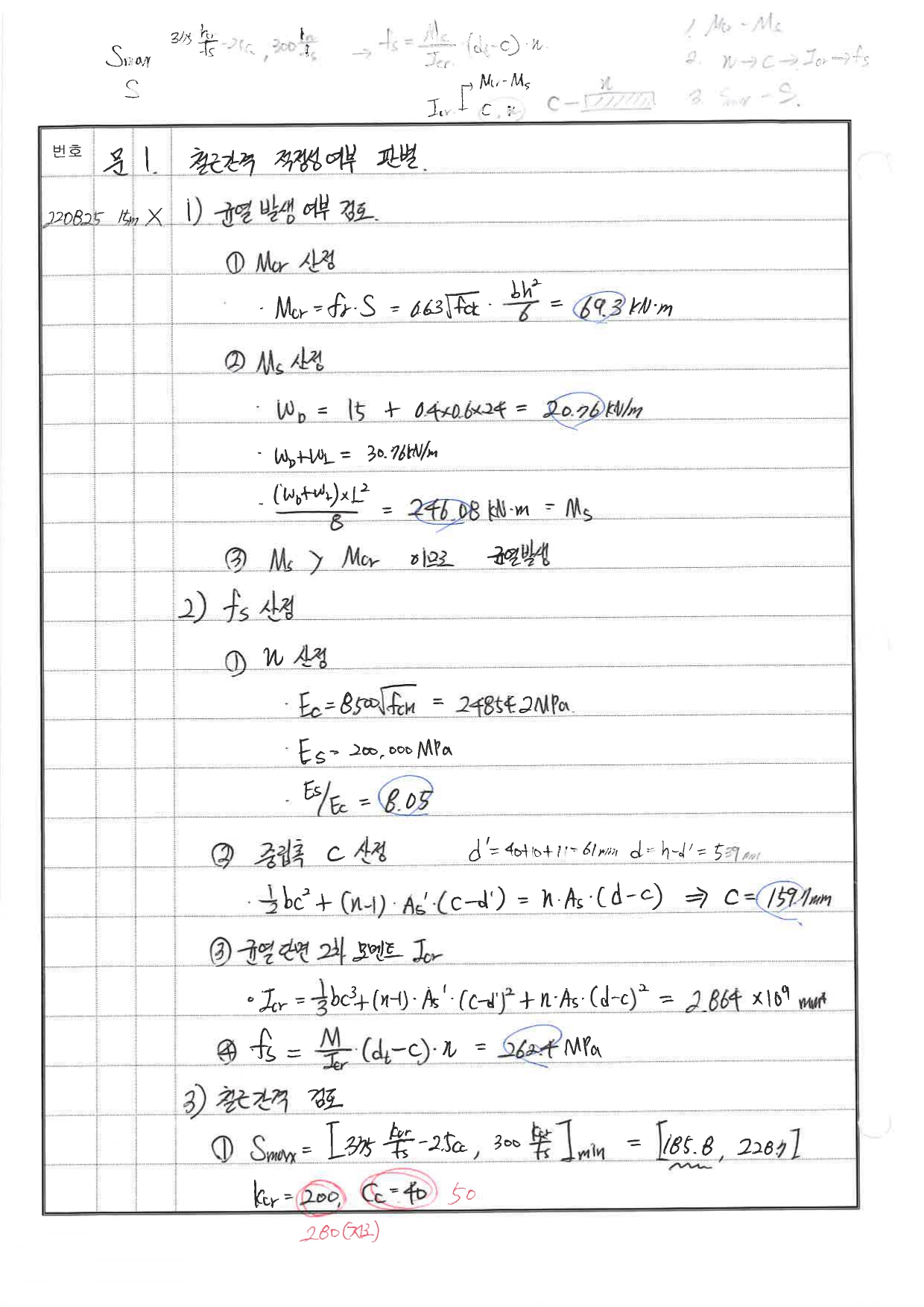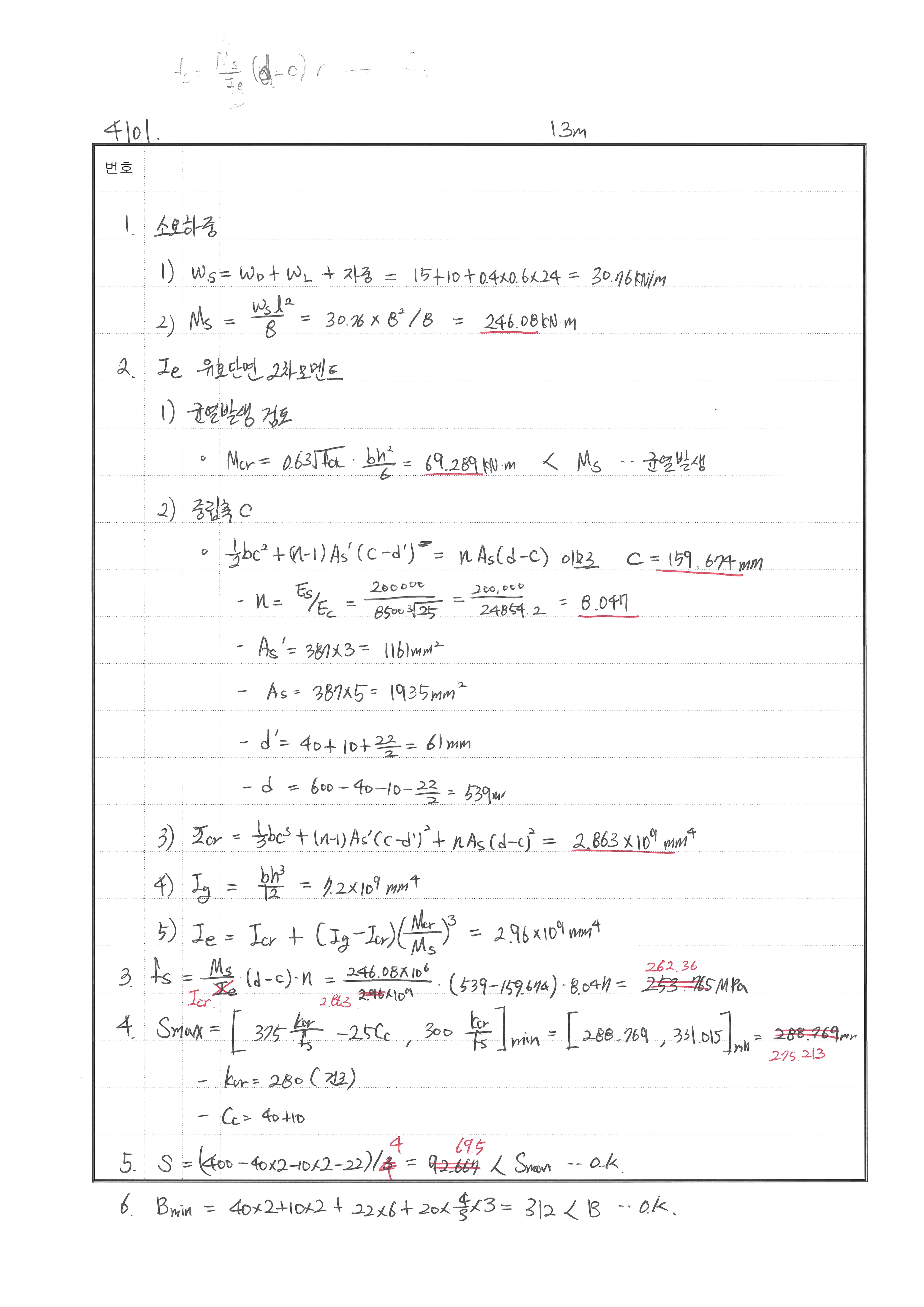 240705 △ 하중에서 오타.. 흐름은 OK 240529 X 철근강도 산정시에는 Icr 이구나 Ie로 계산함.