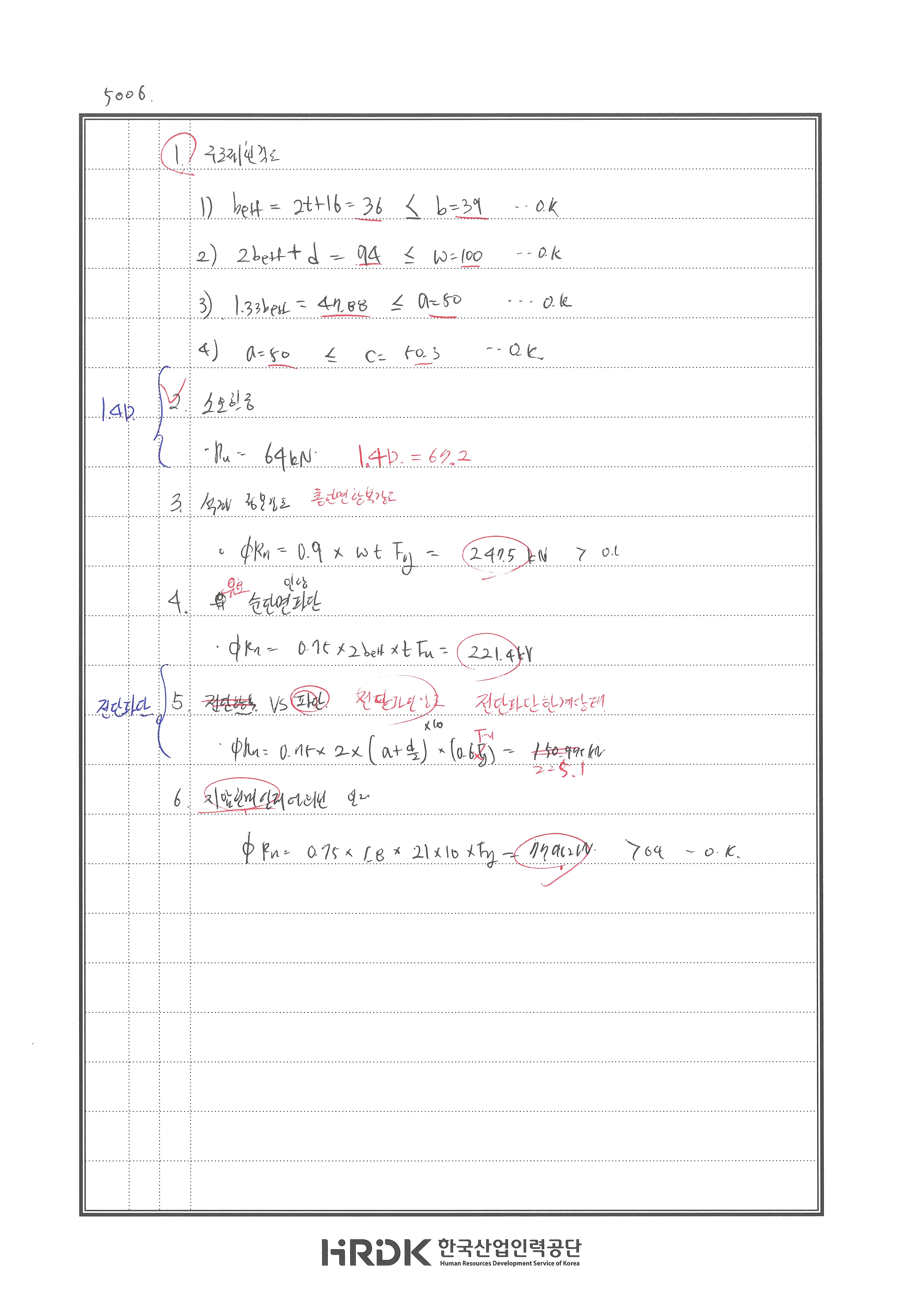 전단파단한계상태에 의한 설계인장강도 (항복으로 계산0