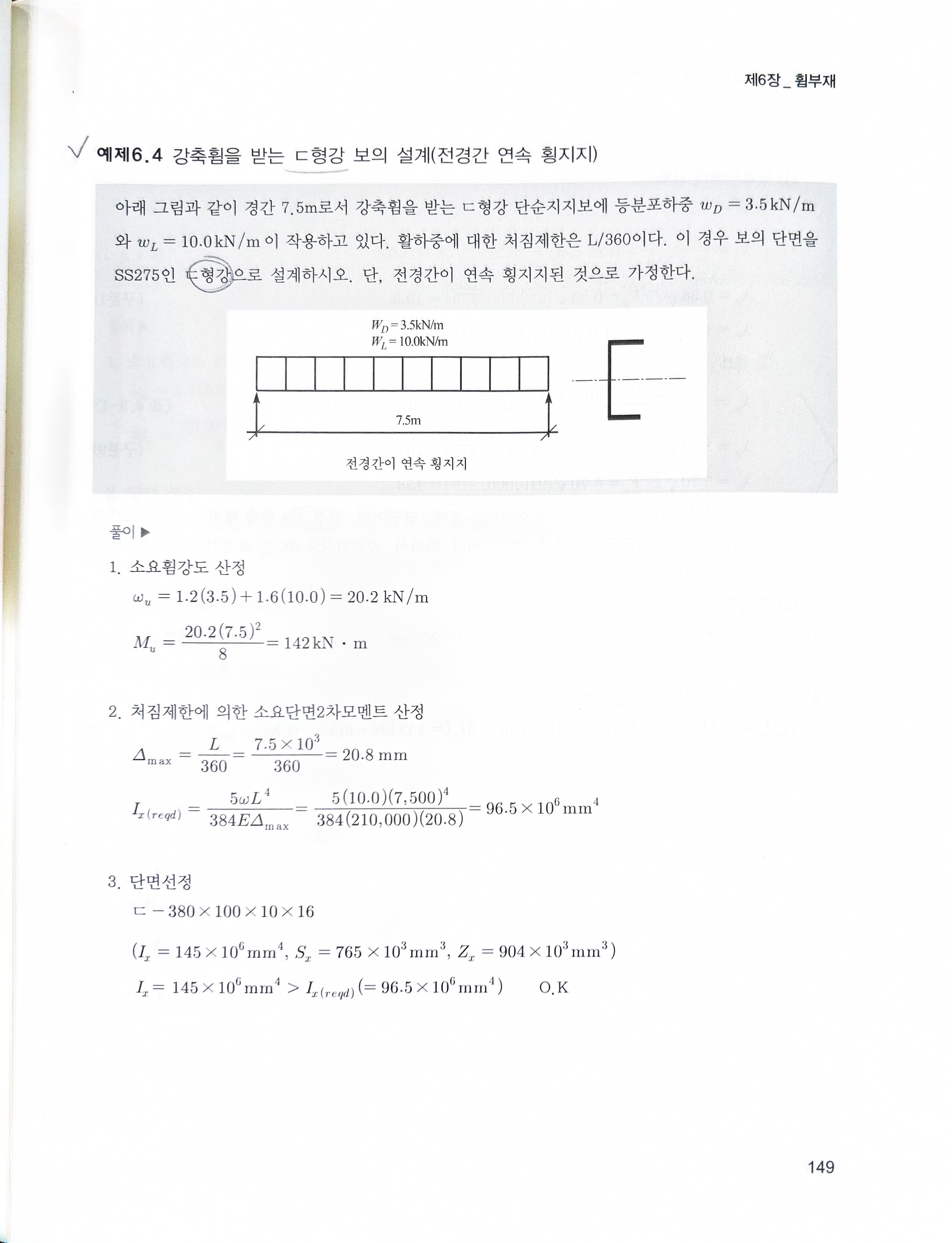 특별할거 거없음. 국부좌굴강도에 대해서는 내용이 없고 비지지길에 대한 검토는 H형강과 동일