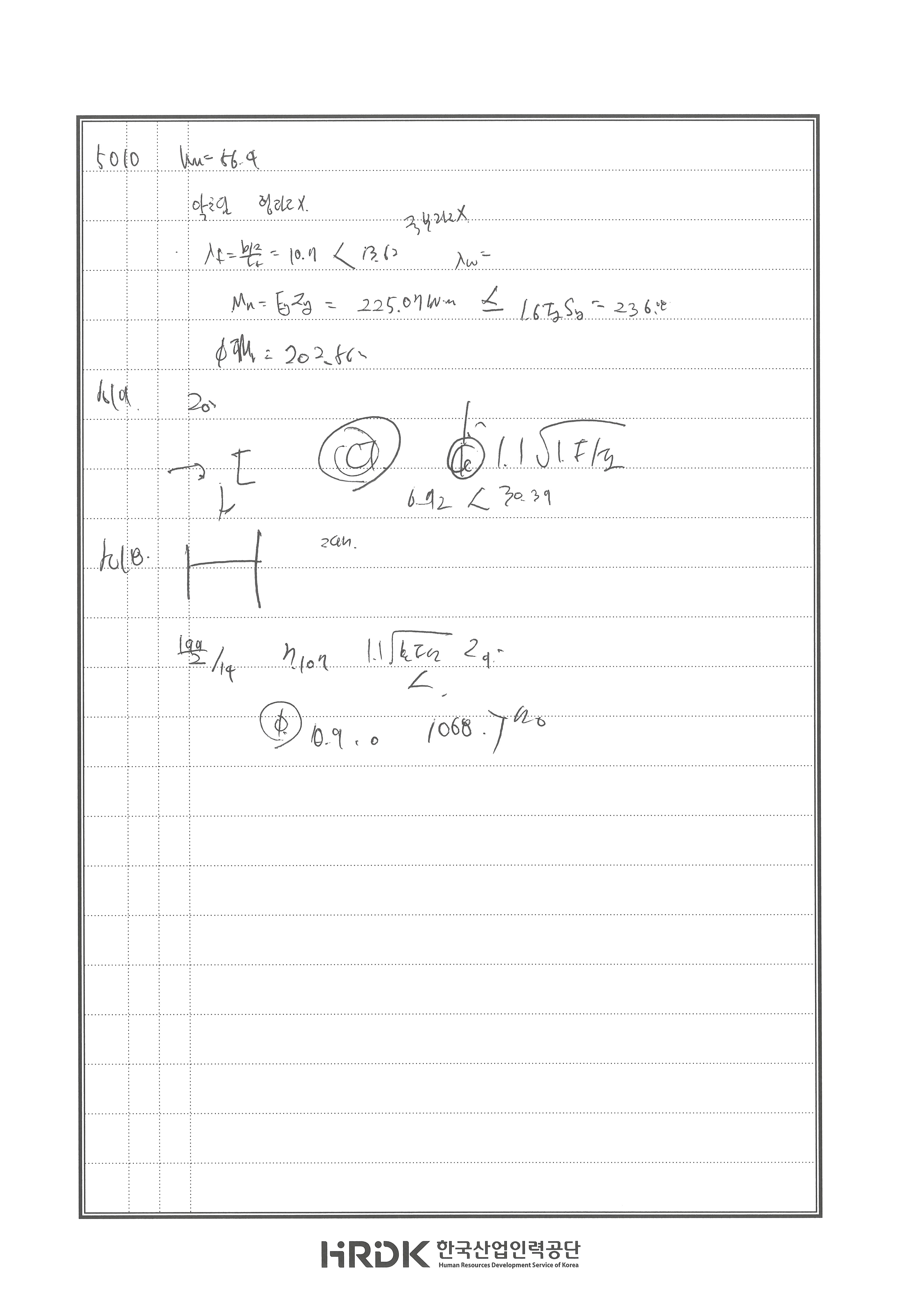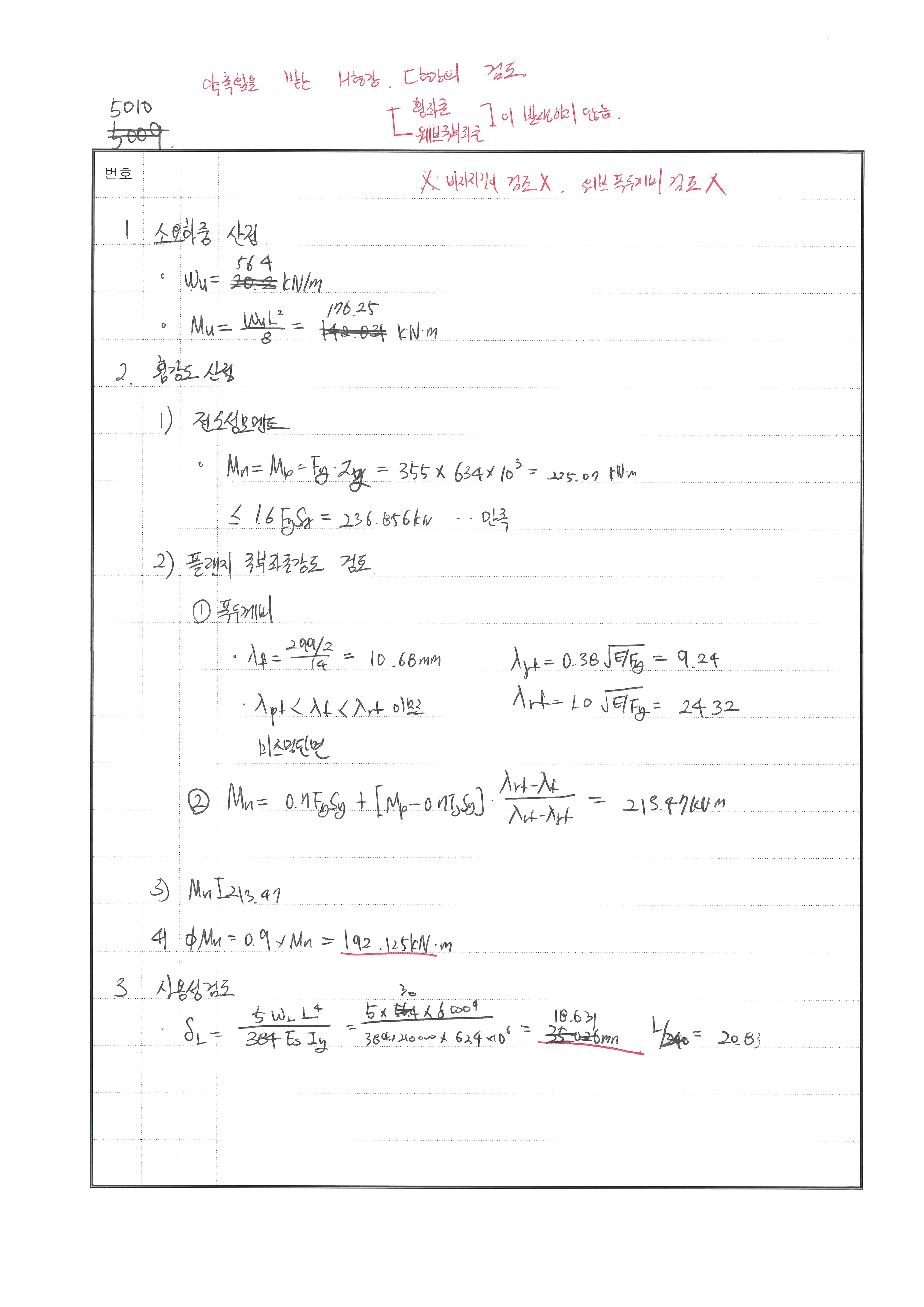 약축은 횡좌굴, 웨브국부좌굴 발생 하지 않음 → 플랜지 국부좌굴만 검토 비지지검토 하지 않음