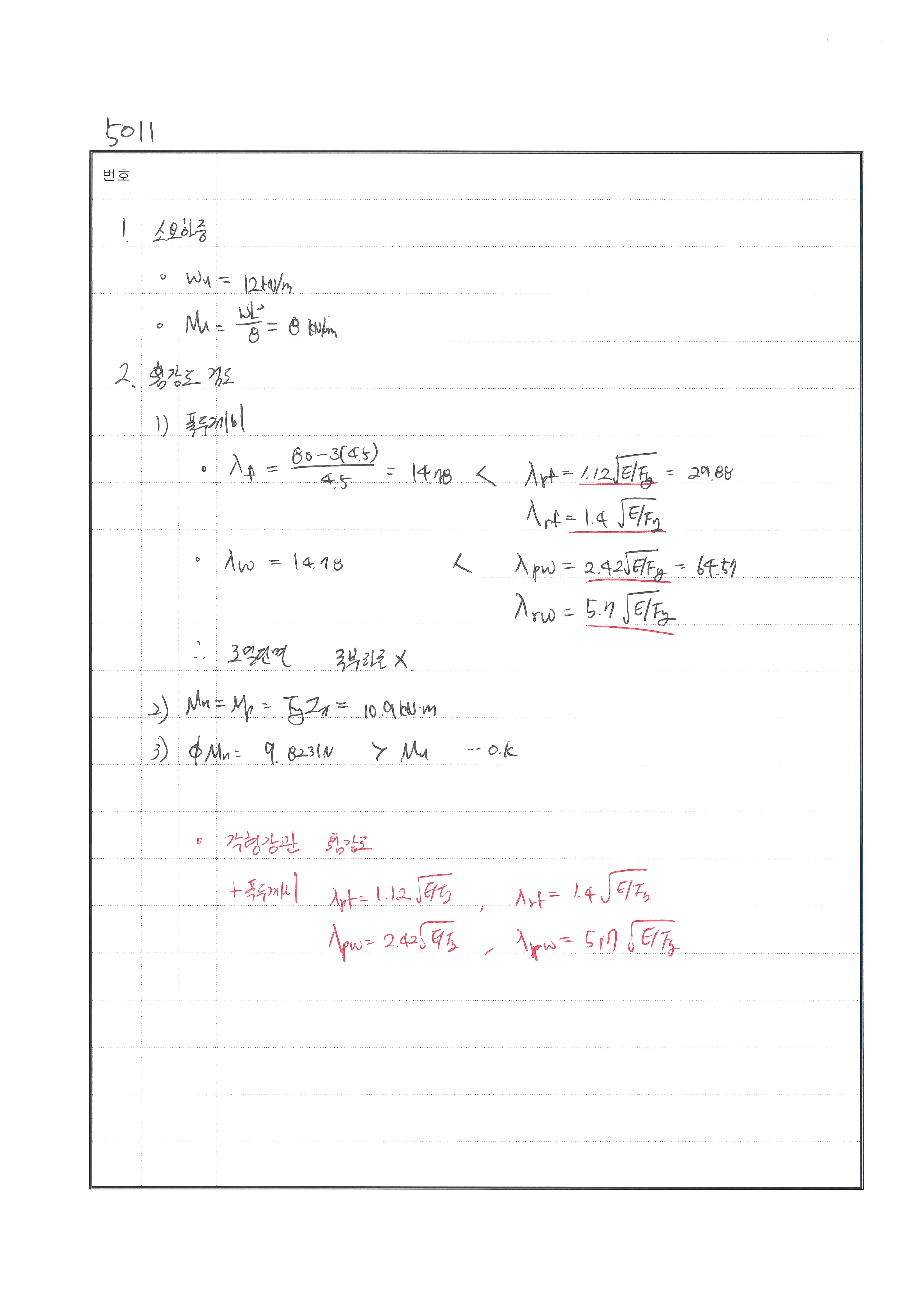 240703 X 전단은 맞고 휨에서 틀림 맥락은 OK 폭두께비 암기 필요 240611 X