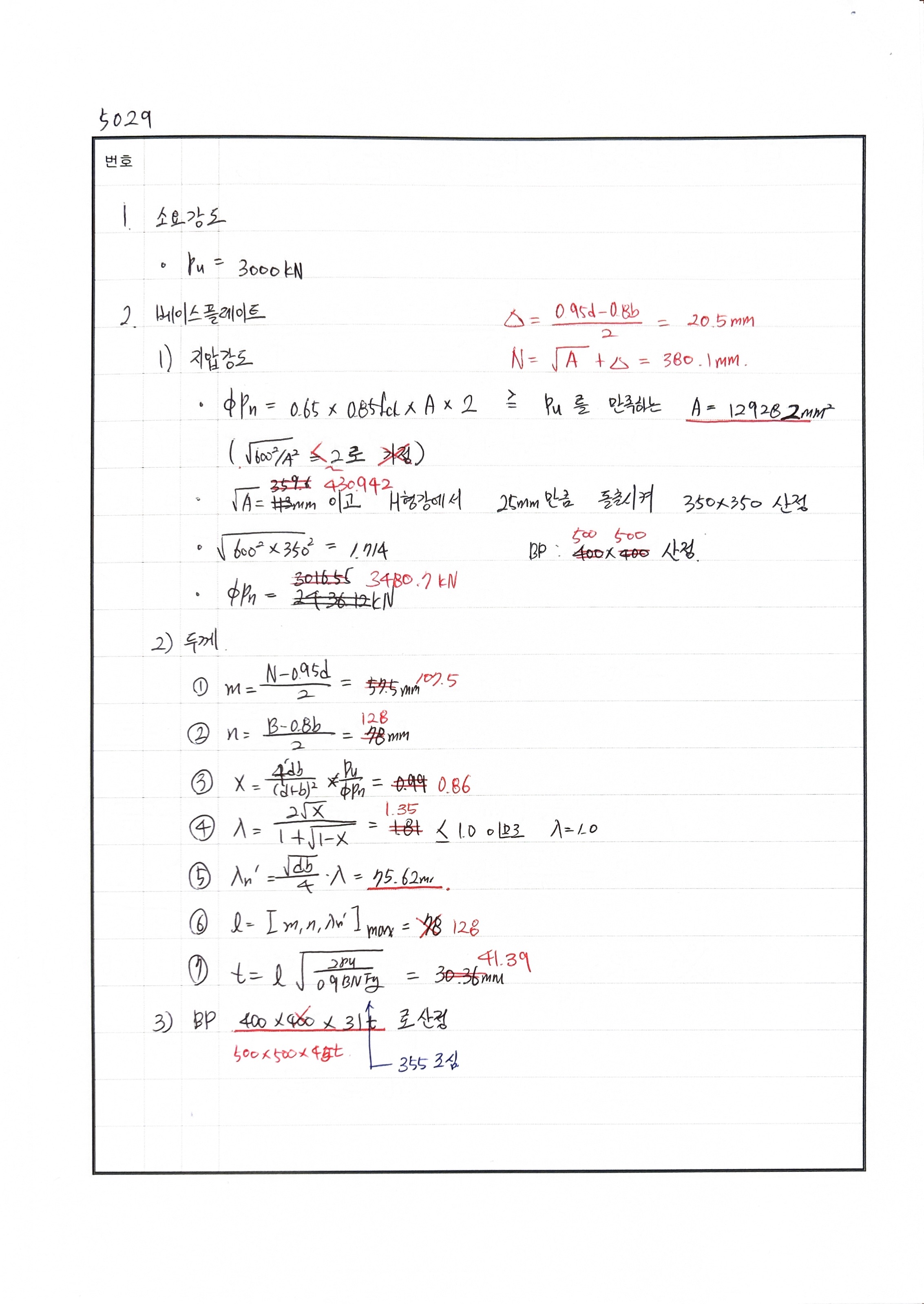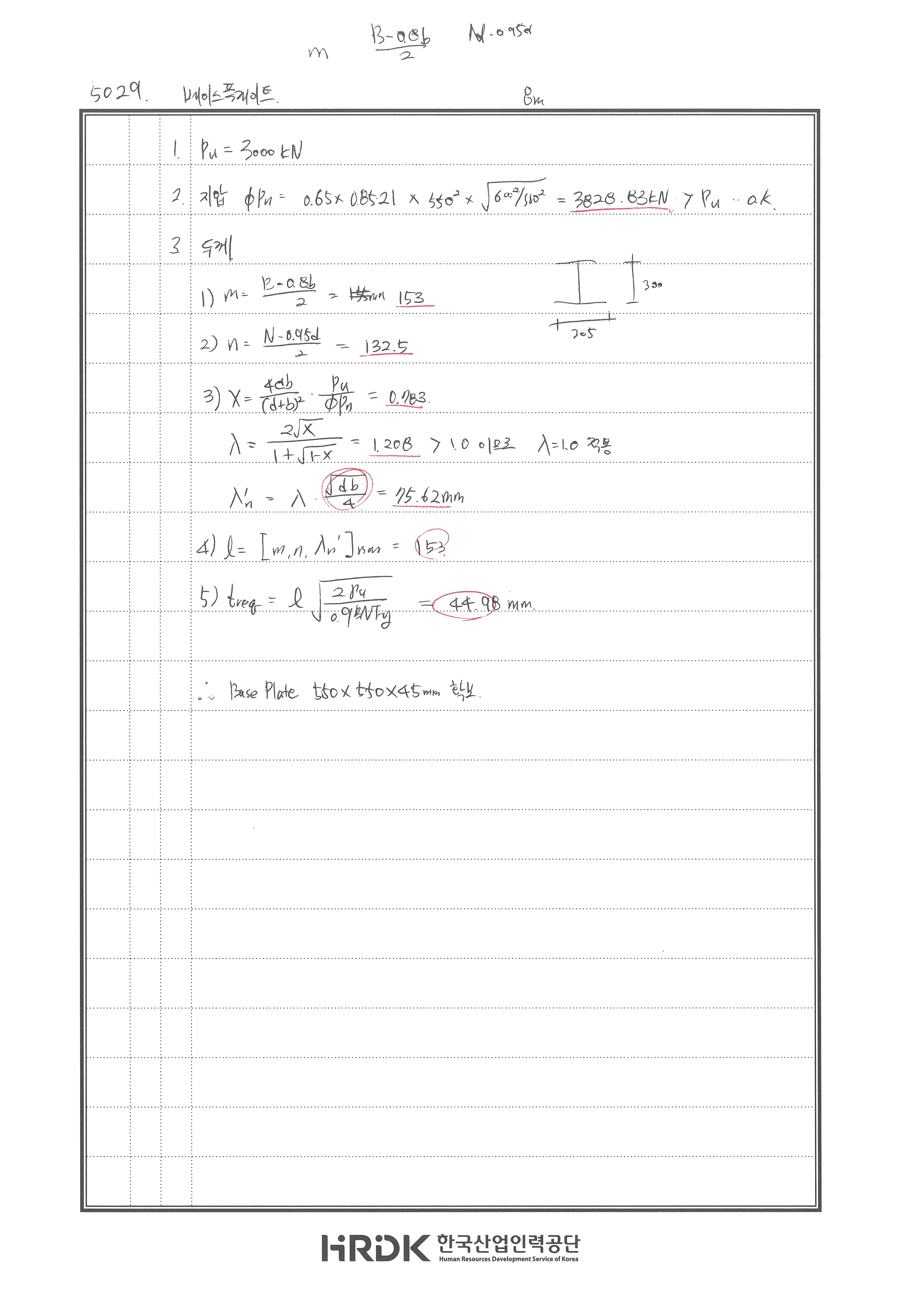 두께 산정 시 자유단? 길이 산정 틀림