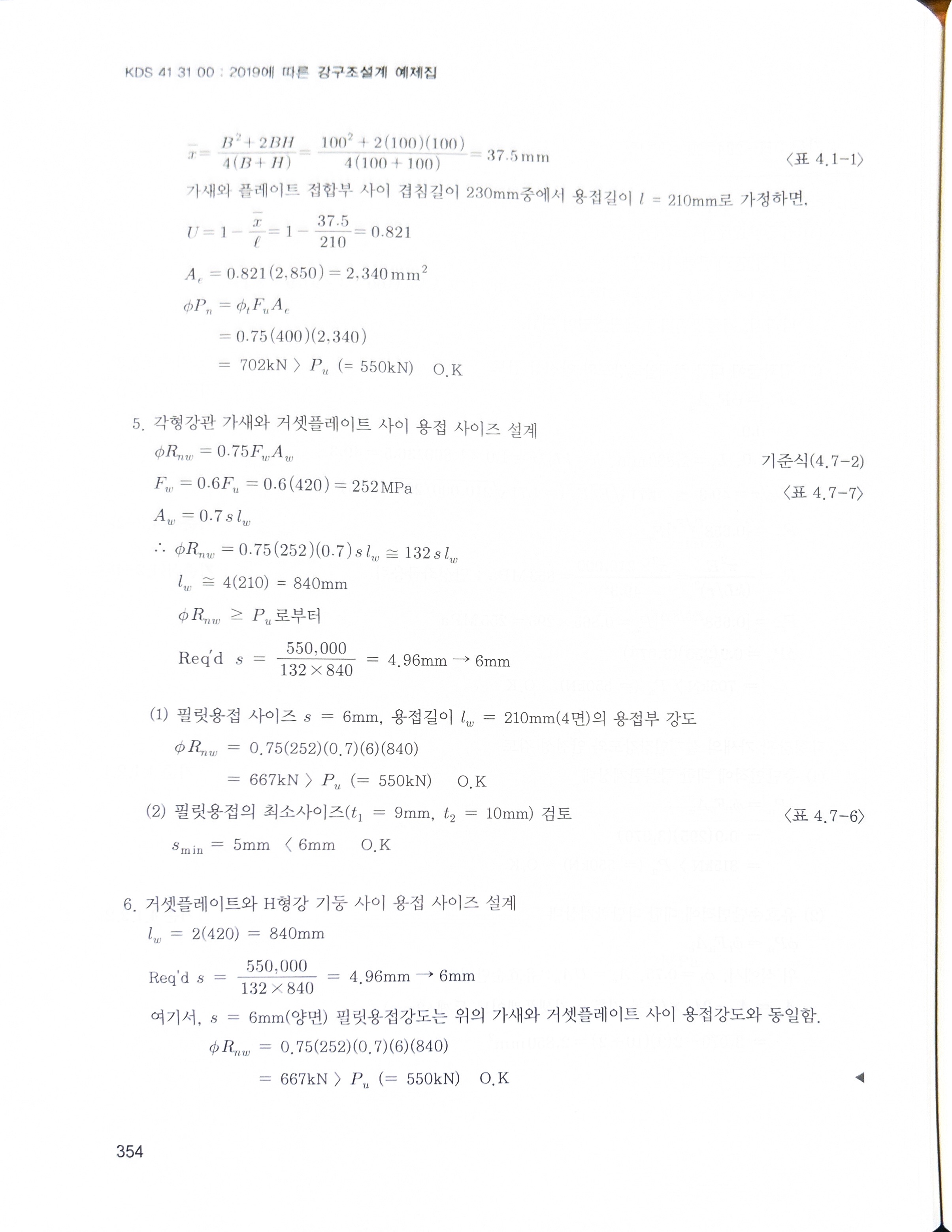 - 각형강관의 인장강도 산정 시 L 실수 용접길이 210
