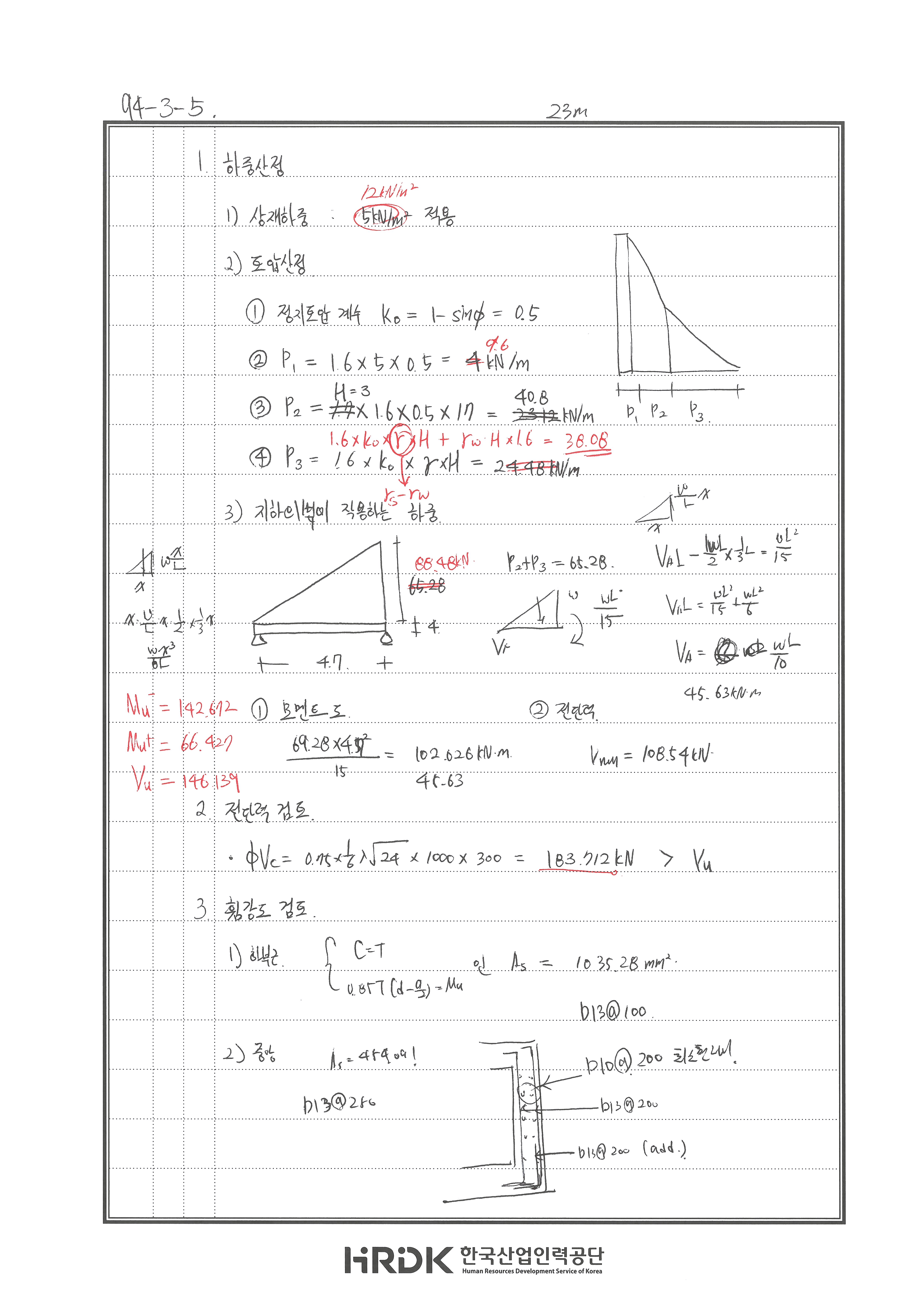 귀찮아서 지하외벽에 작용하는 하중 대충 구함
