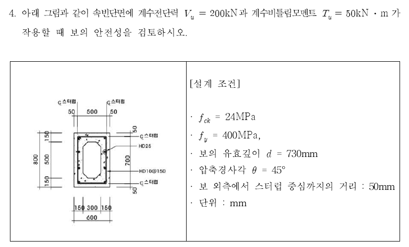 보의 비틀림설계 (속빈단면) : O117-2-4