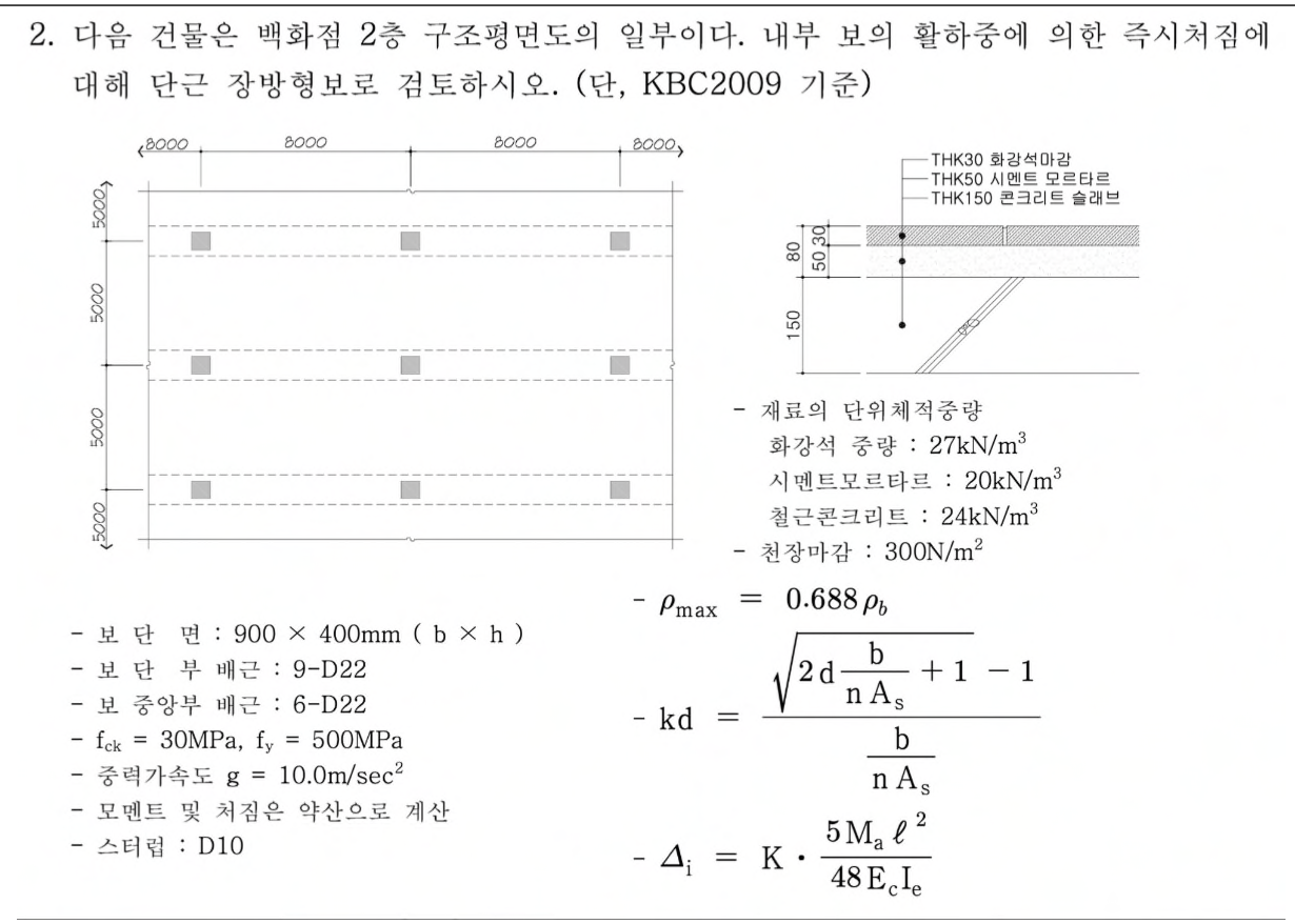 ✓126-4-2 : 👀 비틀림 ✓11715 : 👀 곡률연성비 (항복상태 조건 확인) ✓131-4-6 : 👀 장기처짐검토 ✓126-3-2 : 👀 정철근의 검토 △ ✓4101 : 👀 휨철근 간격 검토 철근강도 산정시 Icr ✓128-2-4 : 👀 기둥과 기초 힘의 전달 ✓89-2-5 : 👀 기둥의 강도 ✓114-4-4 : 👀👀 슬래브 전단 ✓112-2-3 : 👀 기초 응용 (기초 전단식 바뀐 이후로 출제 안함) ✓128-1-11 : 👀