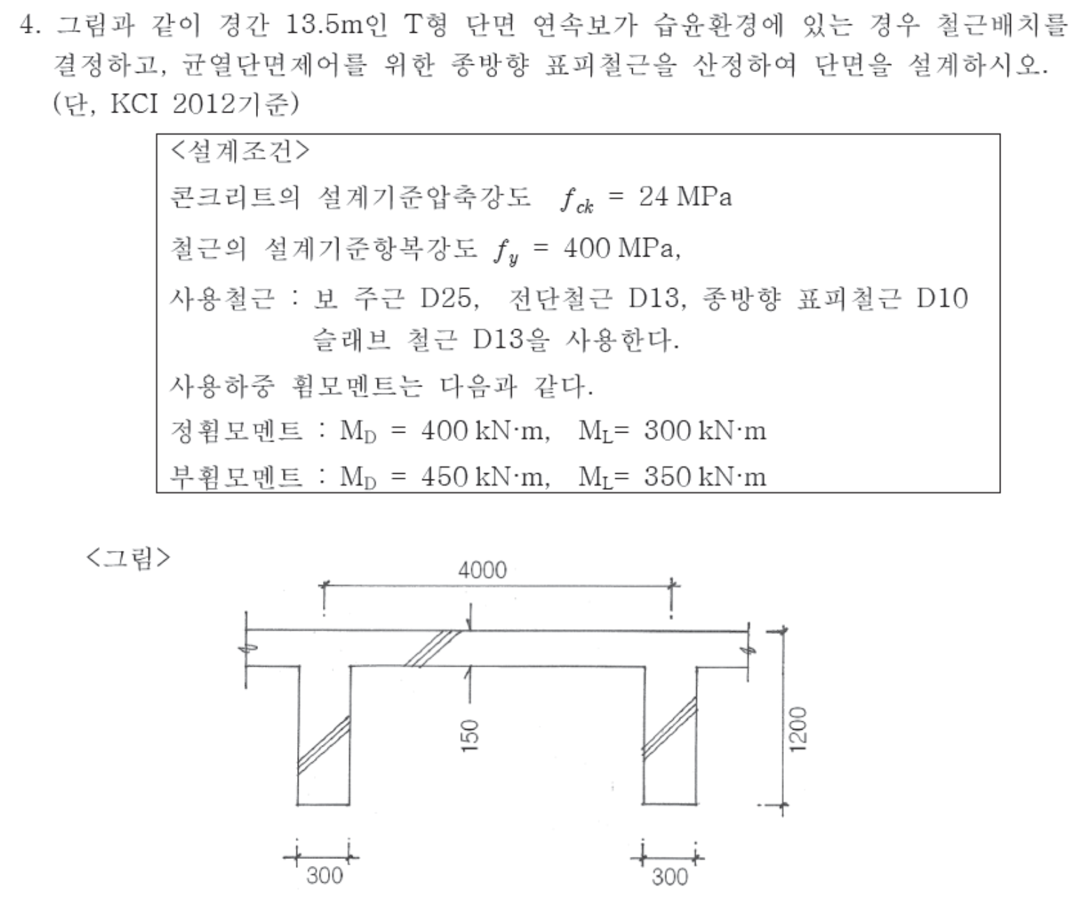 T형보의 철근배치 : X 104-4-3 T형보의 철근배치 : O100-2-4