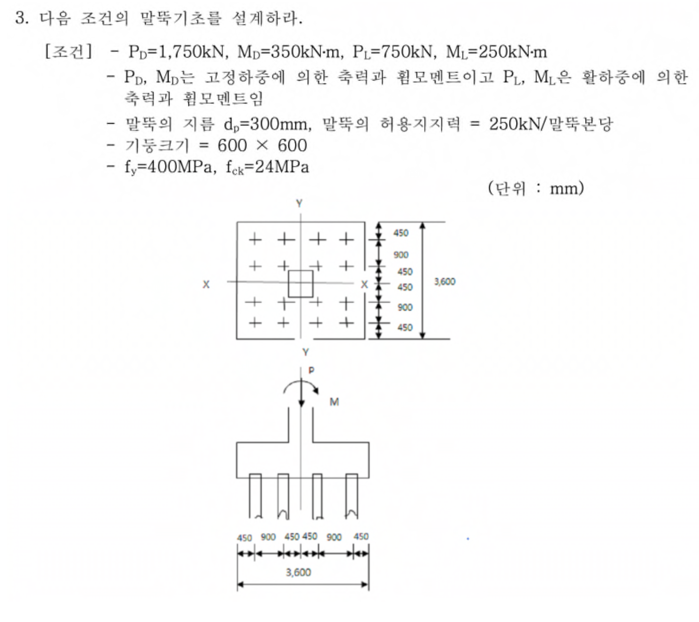 - 말뚝 배치는 4 × 4
