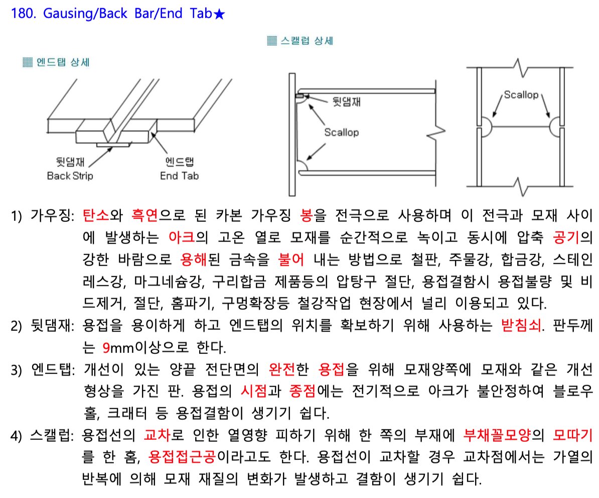 건축구조기술사 면접 시 “엔드탭, 뒷댐재, 가우징에 대해 설명하시오”라는 질문에 대한 답변 예시